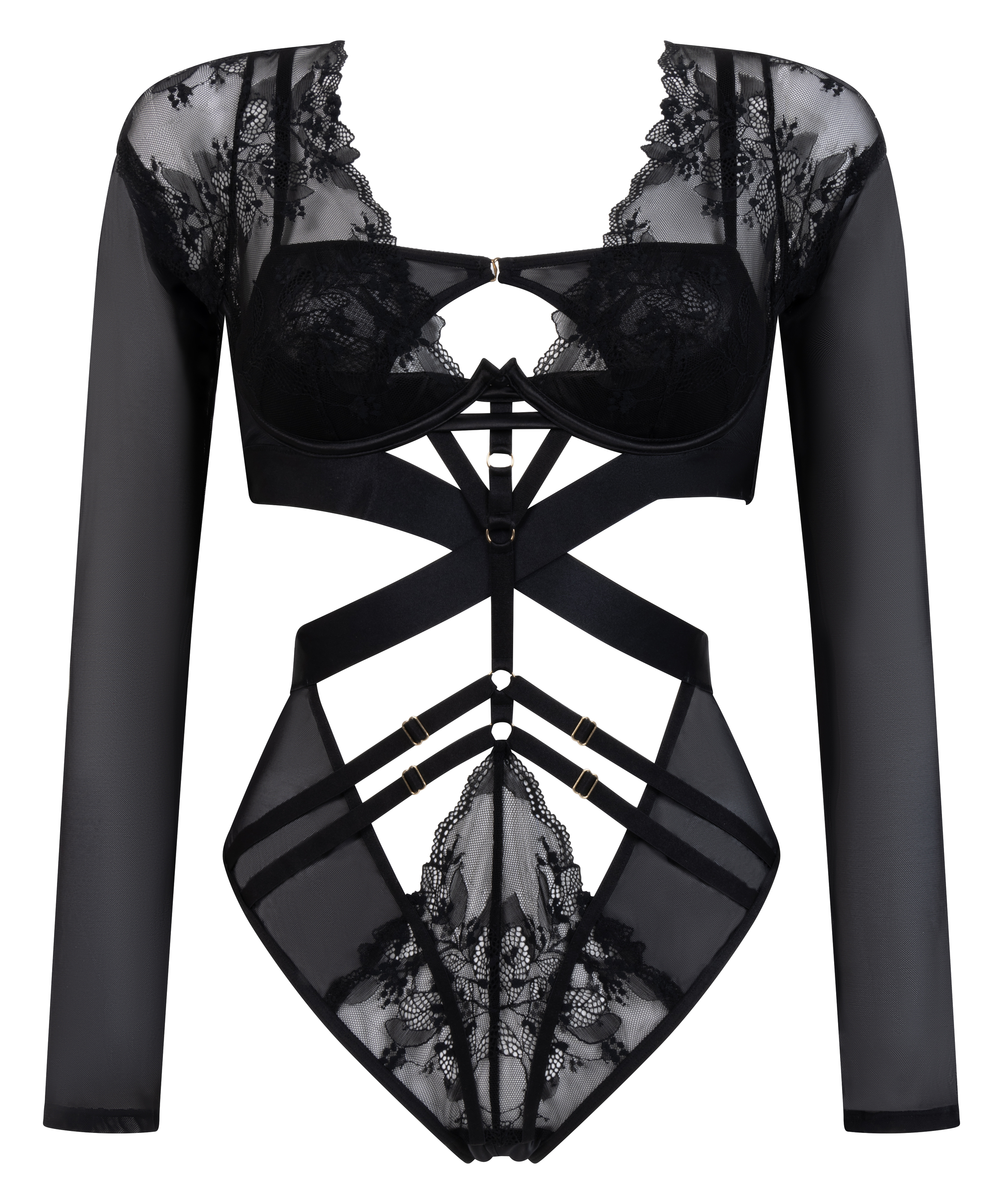 Elevate your allure with this long-sleeve bodysuit, designed with daring cut-outs for a bold yet sophisticated look. Crafted from luxuriously soft, stretch fabric, it contours beautifully to your shape while offering both comfort and confidence. Perfect for making a statement, this piece redefines sensual elegance.