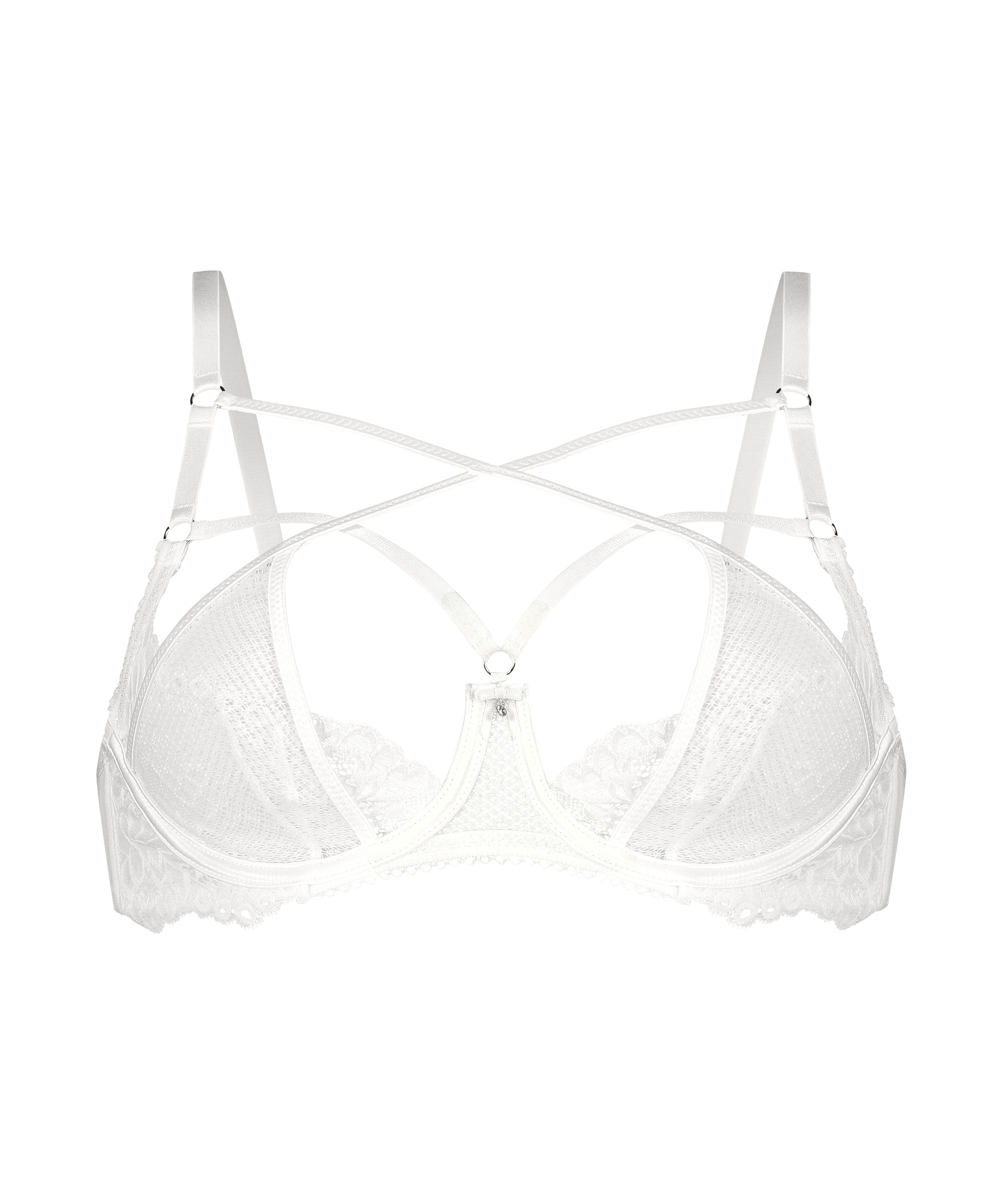Go for a sexy and exciting lingerie set with this bra featuring semi-transparent lace and strappy details. From our Private collection.