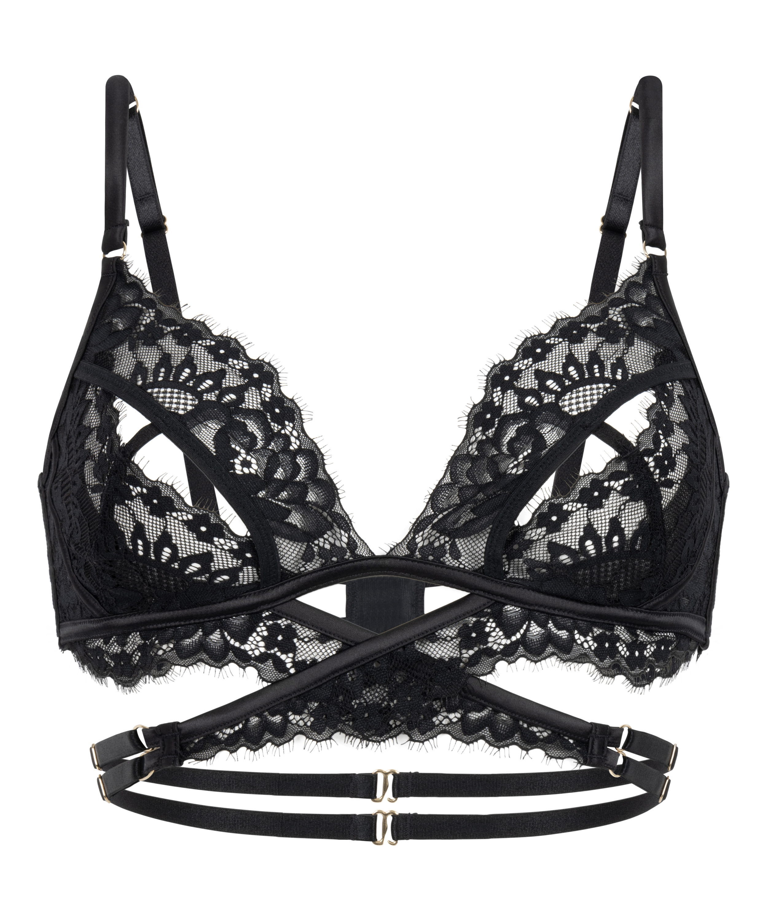 Dare to bare with this open lace bralette, designed for those who love to mix softness with statement. Made from lace that feels as luxurious as it looks, this piece features a daring open design that adds a provocative edge to its romantic silhouette. Lightweight and wire-free, it offers a comfortable fit while making a bold impression.
