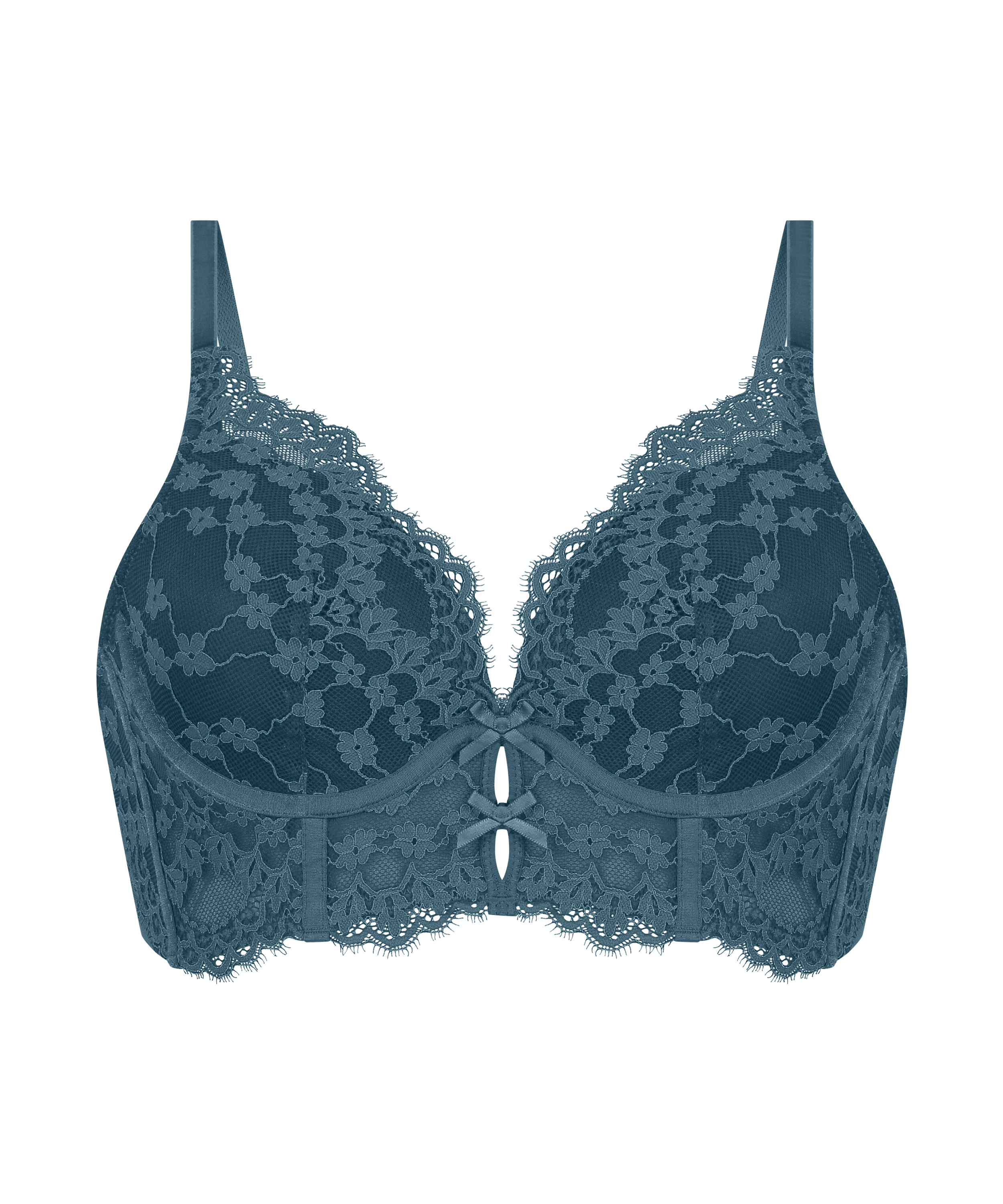 This bra looks great on you! It's a longline model and trimmed with lace. Combine with matching items for a complete look.