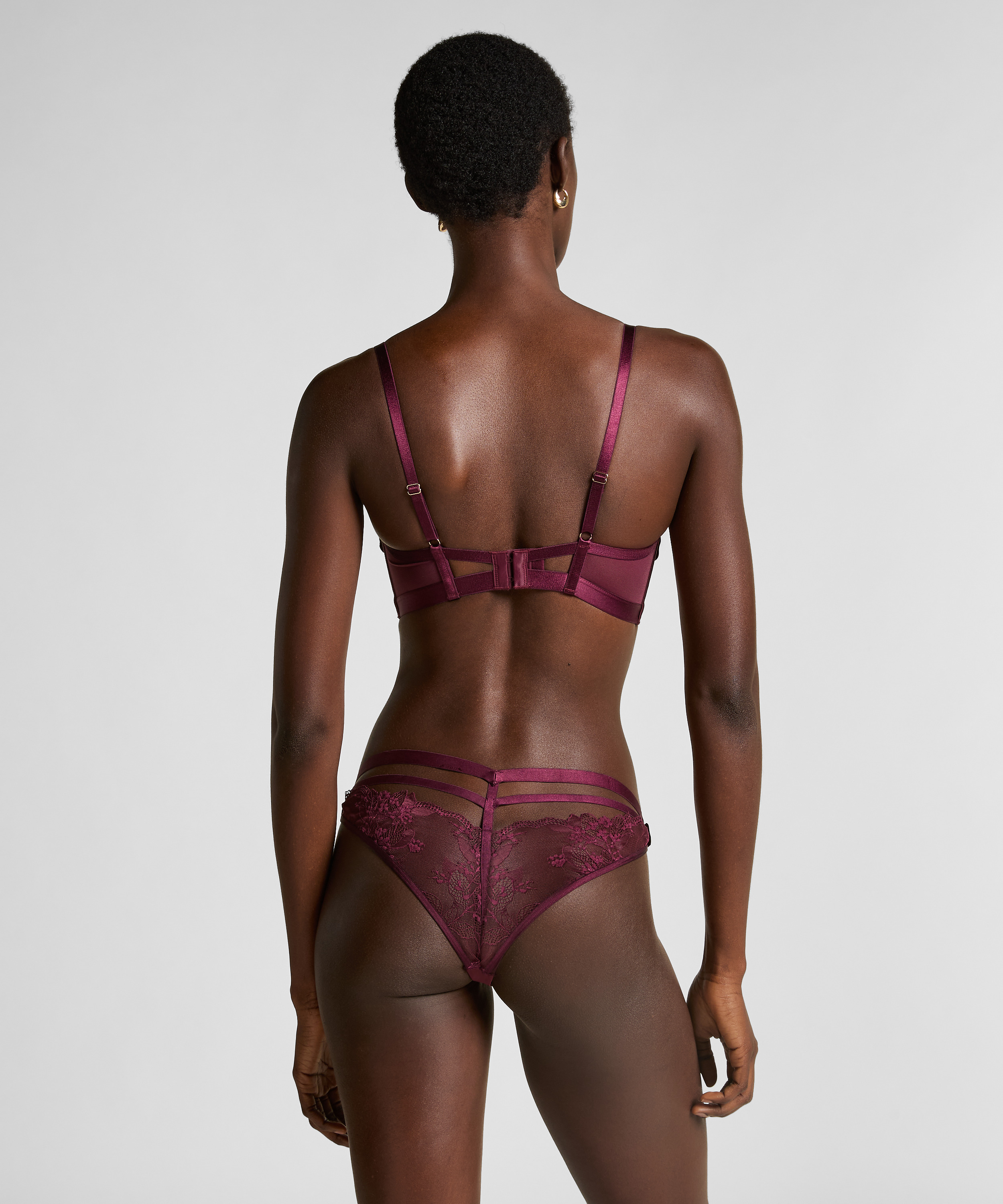 Daring, that is our Avela brazilian. Featuring mesh and lace, this piece combines soft textures. The highleg cut elongates your silhouette, while the open crotch adds a provocative edge. Combine with the matching bra for a complete look.