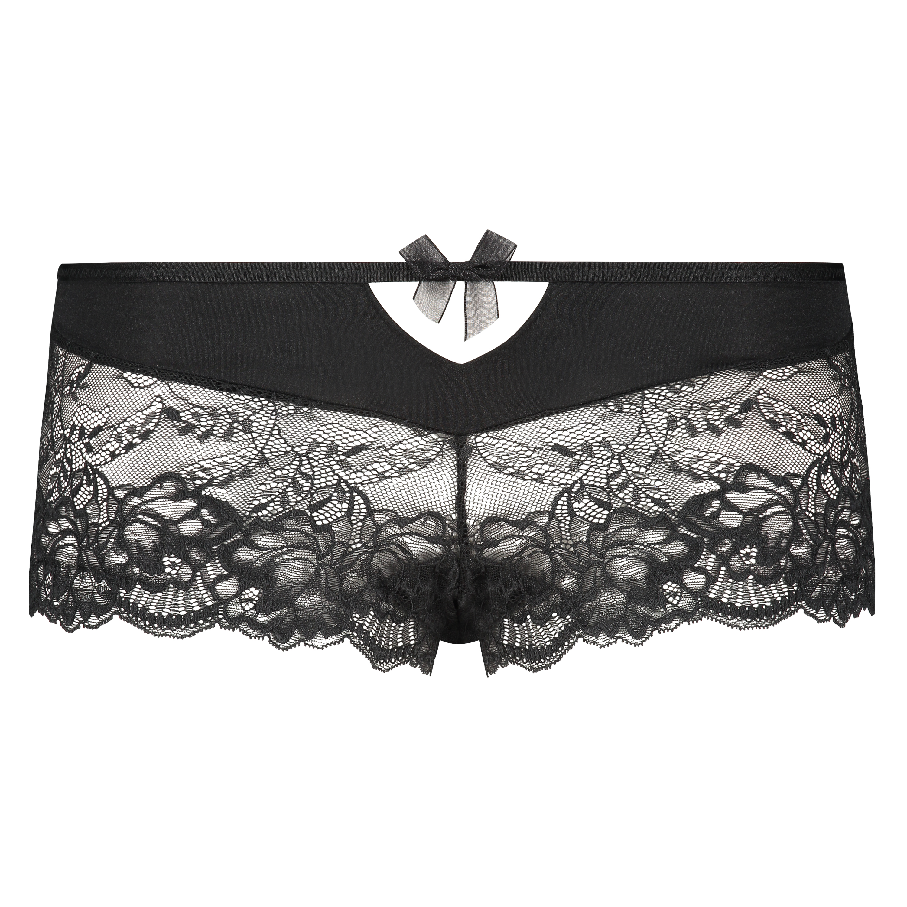 So sexy! These boxers are finished with lace at the bottom and a cut-out at the top. The small bow in the middle adds a finishing touch.