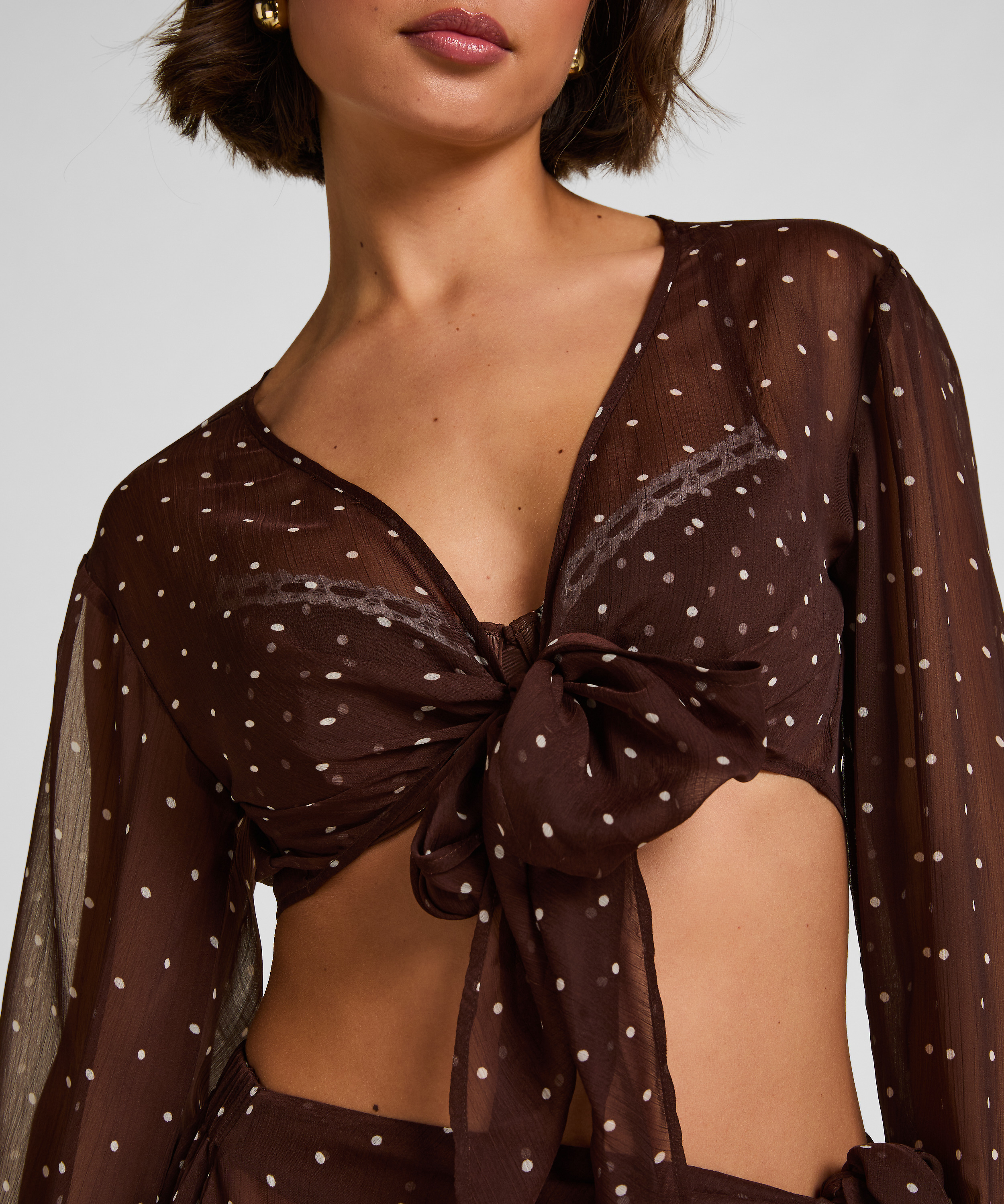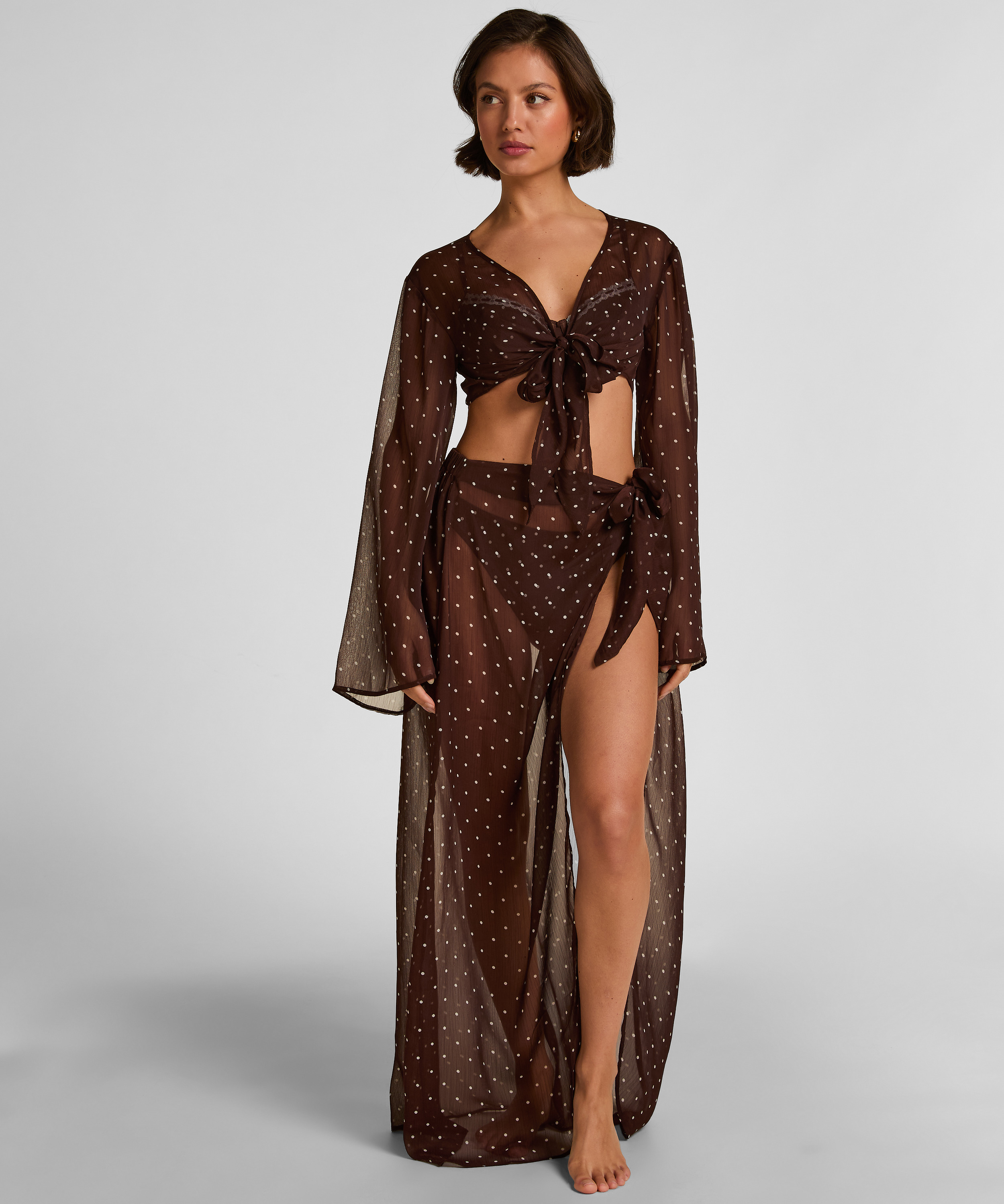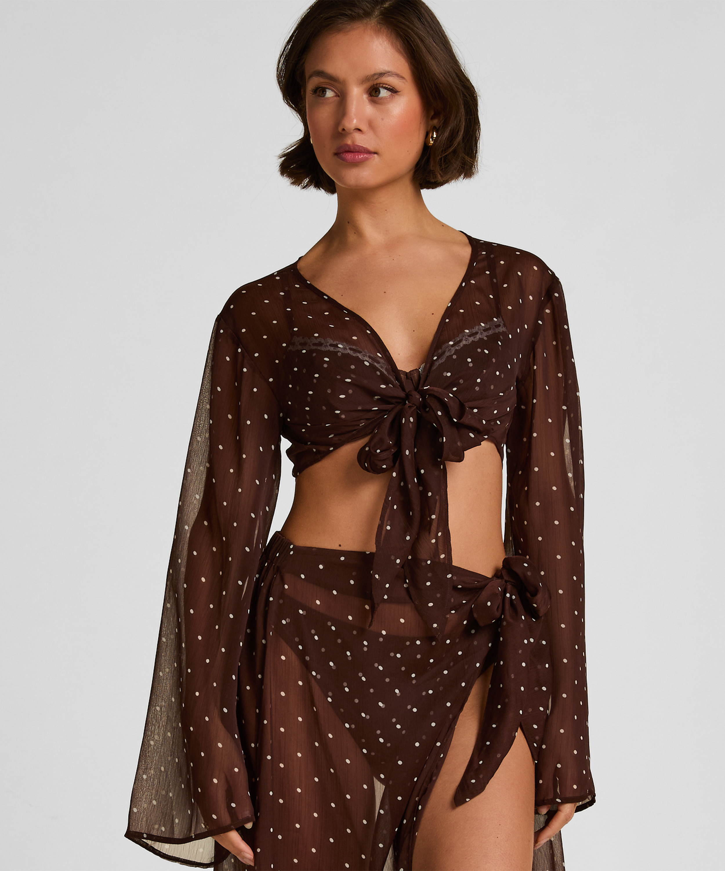 Elevate your beachside look with this elegant long‑sleeved wrap top—your new go‑to layer for sun‑soaked days and relaxed coastal vibes. Made from a light, breathable fabric, this wrap top offers effortless drape and comfort. The long sleeves provide added coverage, while the front tie closure lets you adjust the fit exactly how you like it. Whether you're lounging by the pool, taking a walk along the shoreline, or grabbing a refreshing drink at the beach bar, this wrap top adds a chic, laid‑back elegance to any warm‑weather outfit.