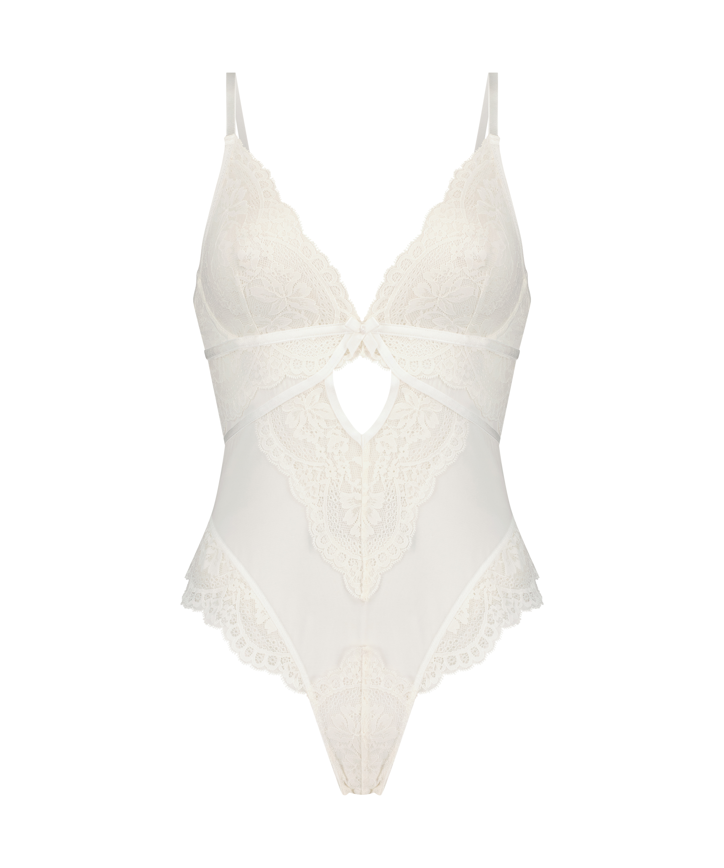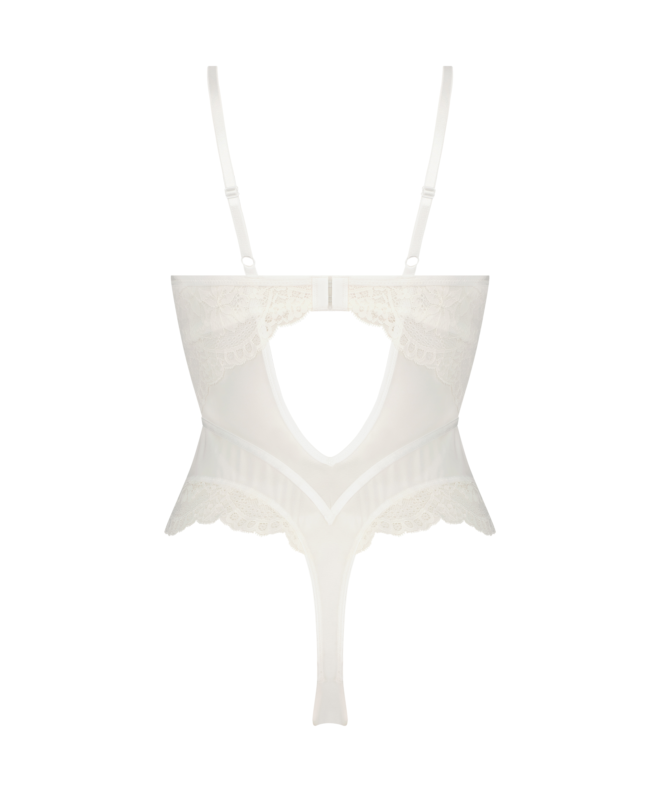 Look amazing in this body! It has lace, mesh and a pretty bow at the front. The shoulder straps are adjustable and the body is semi-sheer.