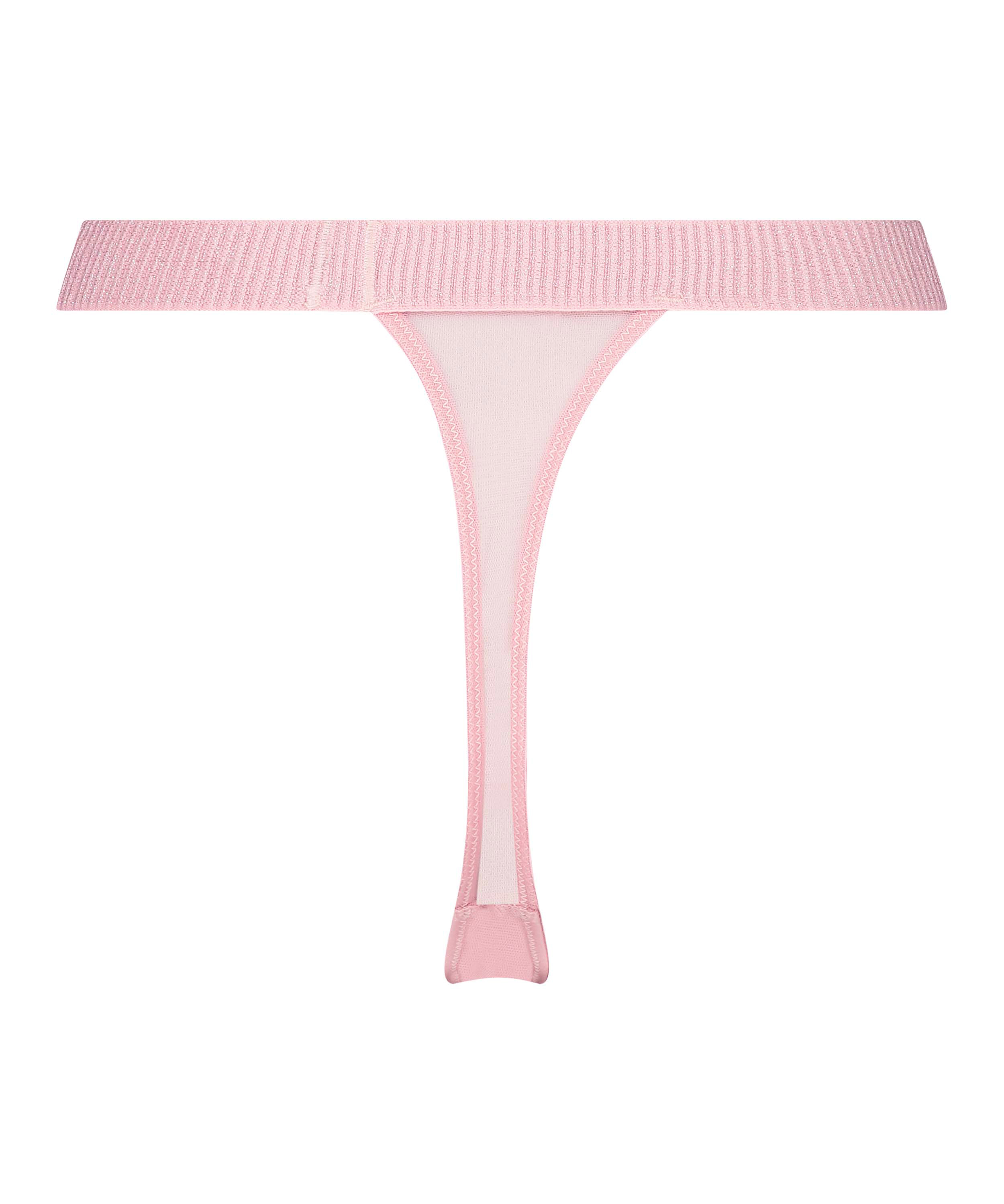 Look great in this cute thong! It features lace, cute glitter in the band, and mesh details at the back. Combine with matching items for a complete set. Part of the Kim Petras collection.