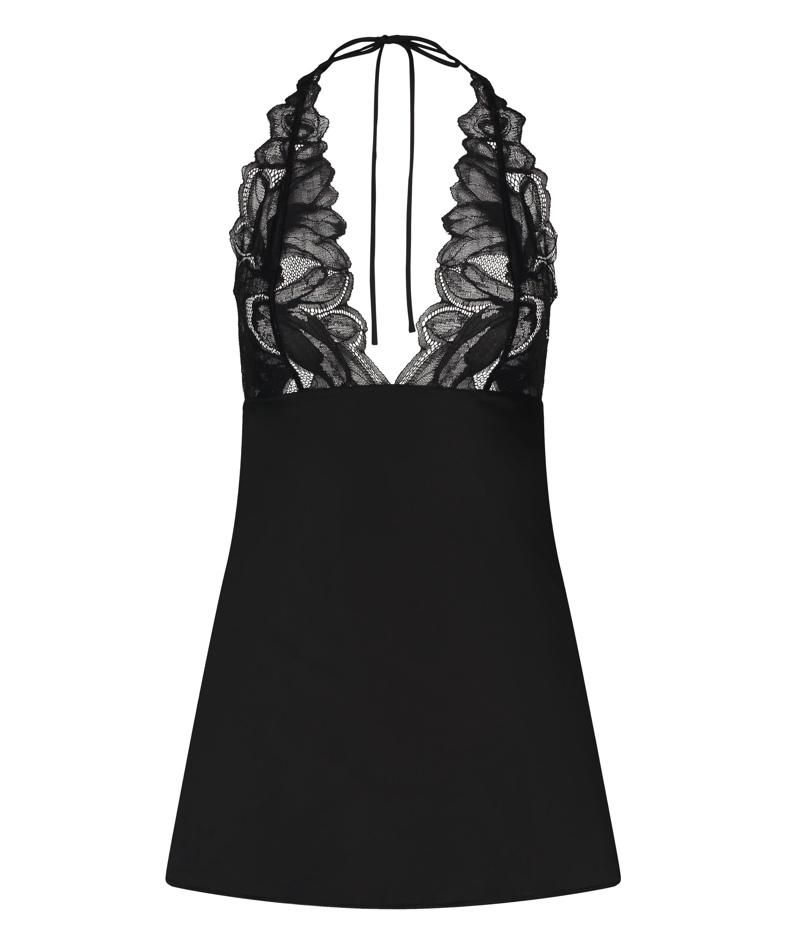 This slip dress is a must-have for your elegant collection! It is made of satin, has a beautiful v-neck and contains beautiful lace details. Combine with a matching kimono for a complete look. Part of the Private collection.