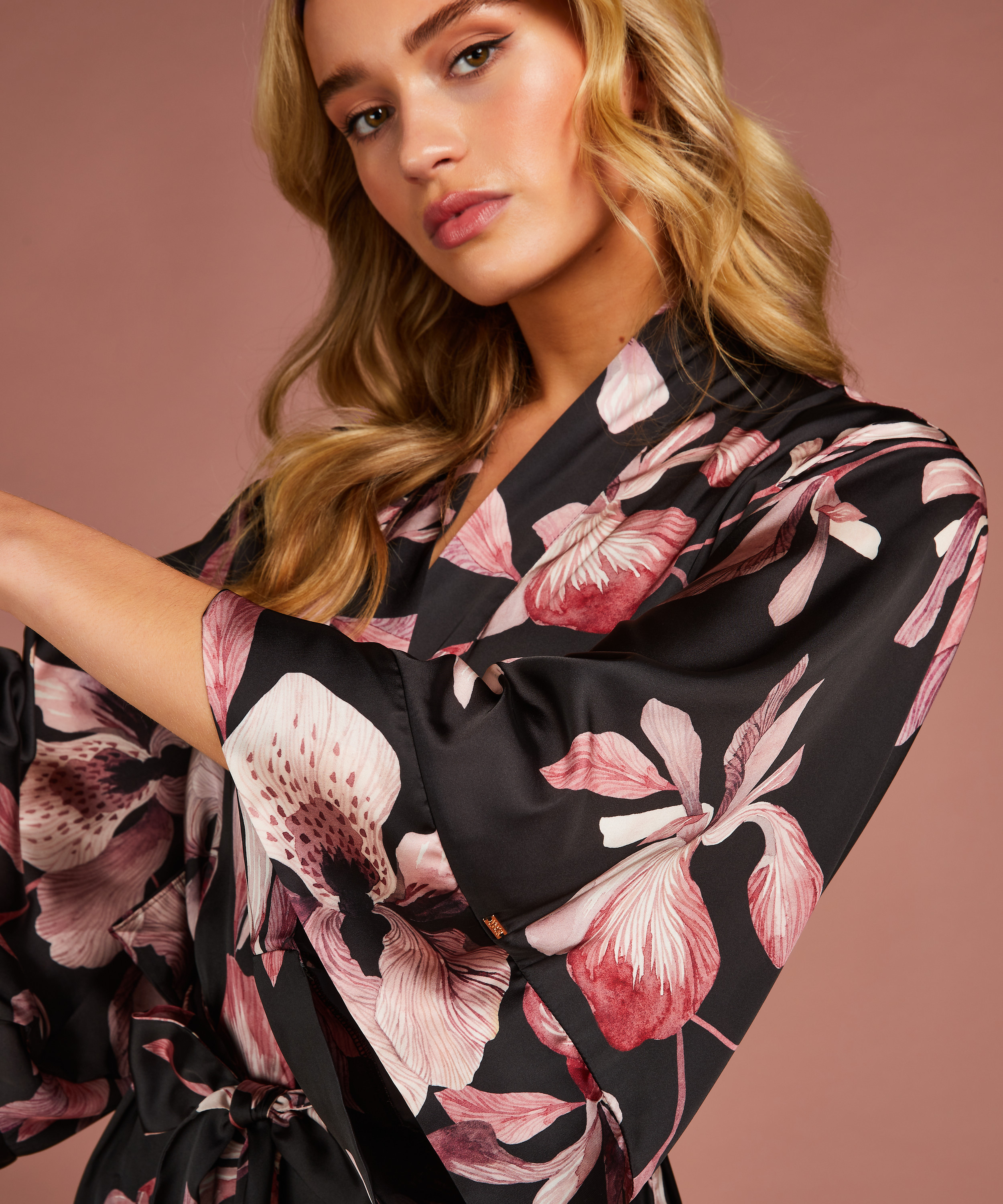 Bloom Satin Kimono - Black