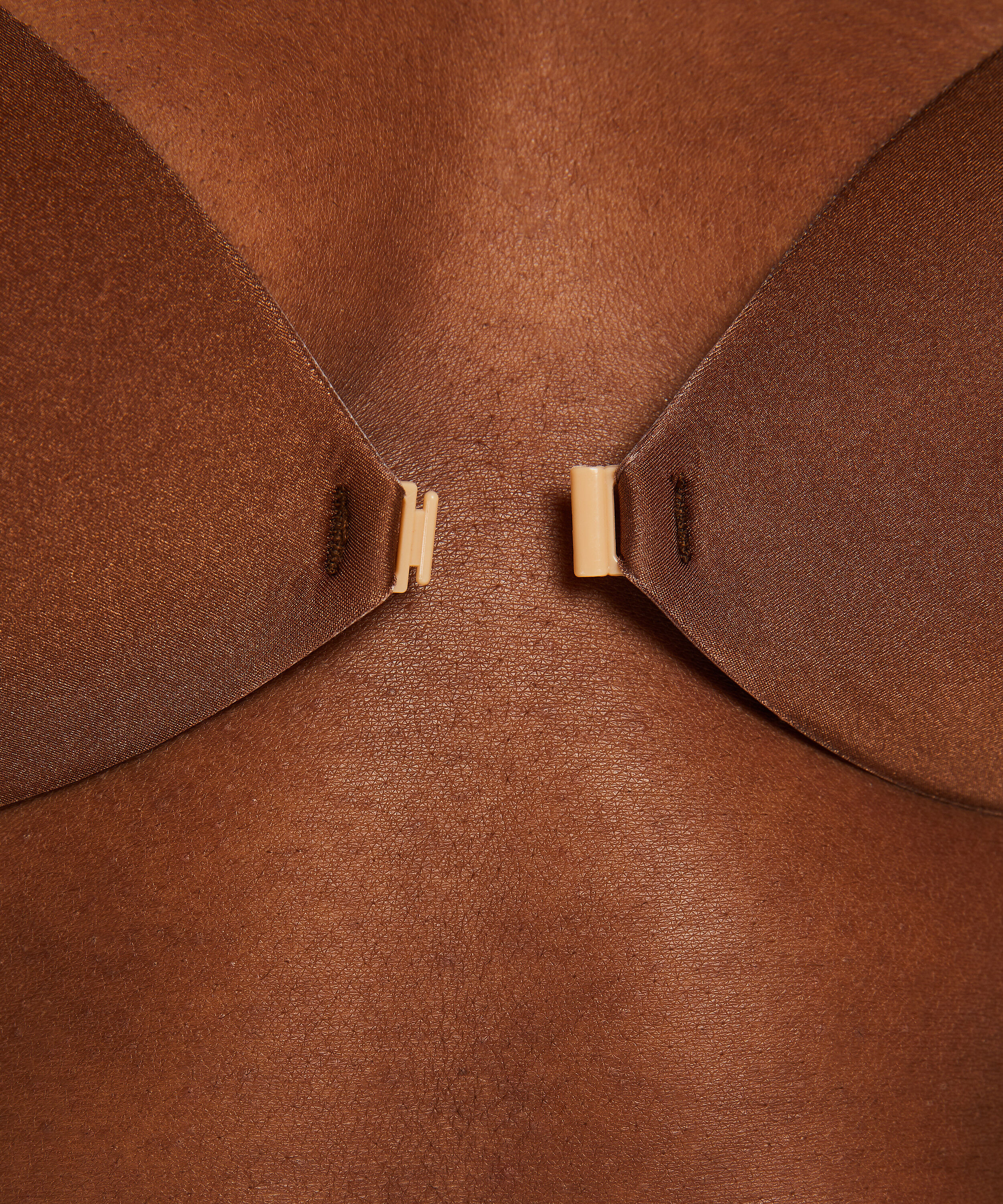 - Press on the bra with both hands to ensure the hold (if you have a sticky bra with cups, connect the front closure first)