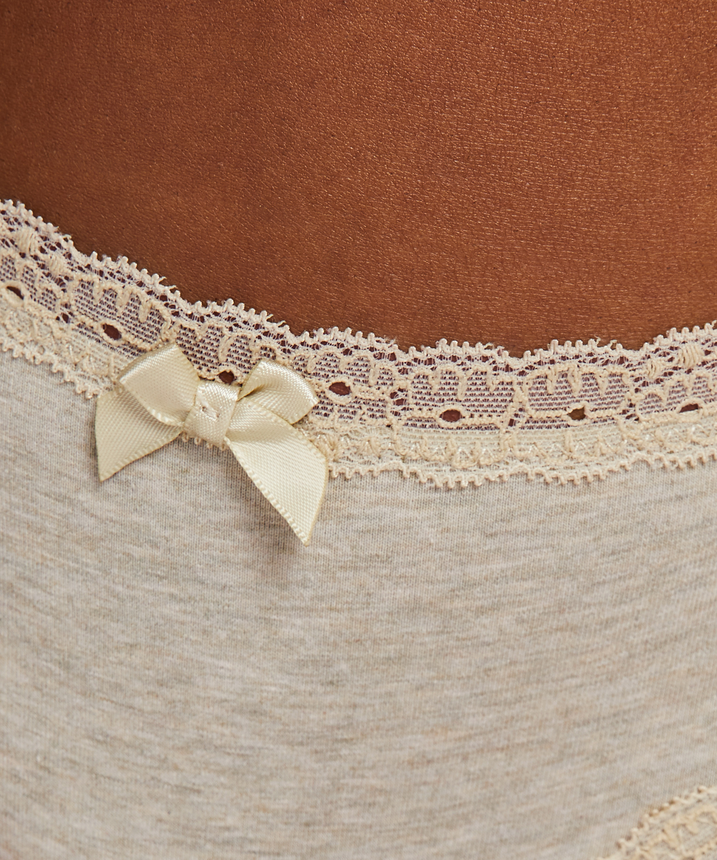 These basic Brazilian knickers are an ideal addition to your daily wardrobe. They have a lace border and a small bow.