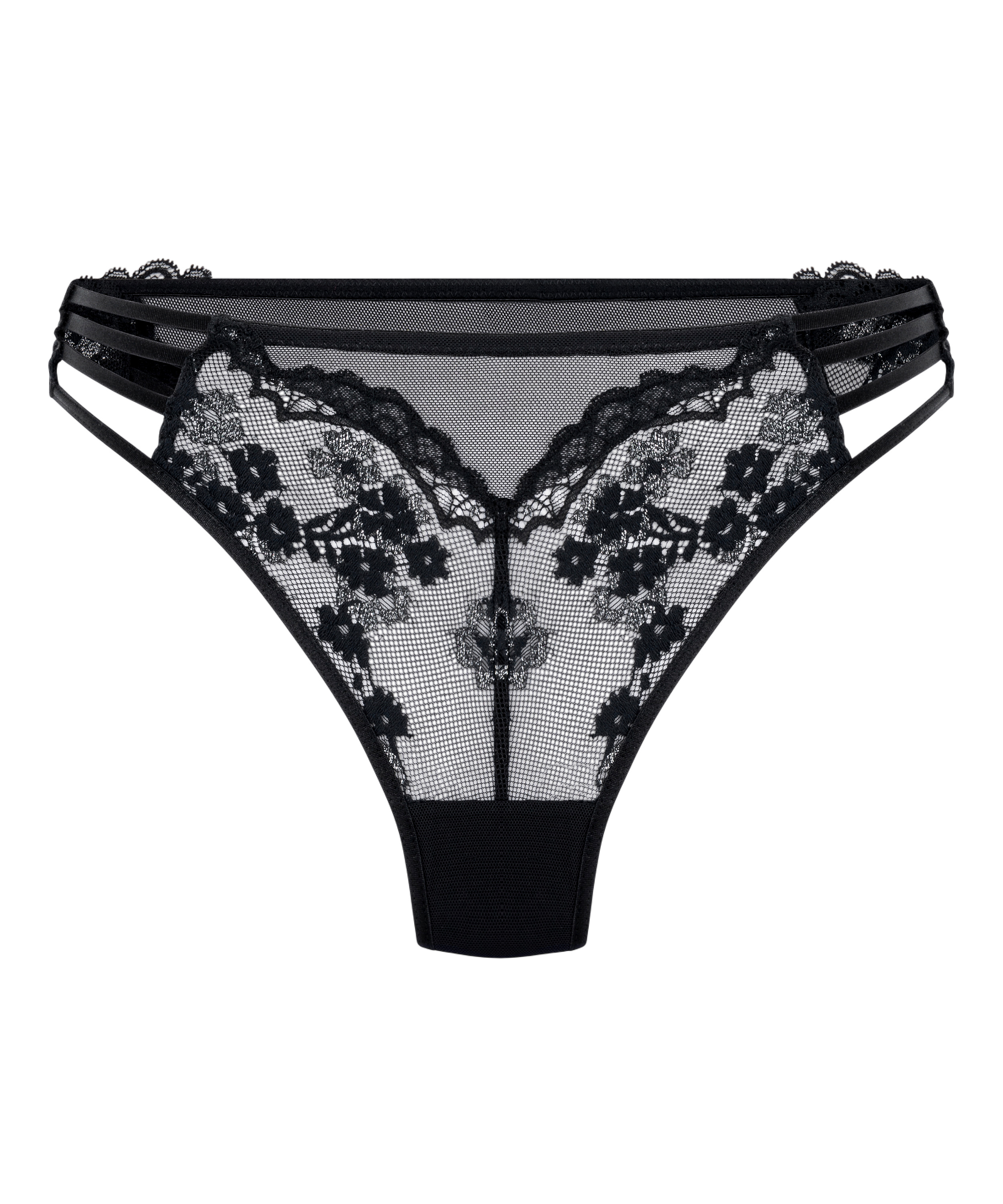 Turn up the confidence with this lace thong — where elegance meets edge. Made from soft, stretch lace, it features intricate cut-out details at the sides for a bold yet sophisticated look. Combine with your favorite bra for a complete look.