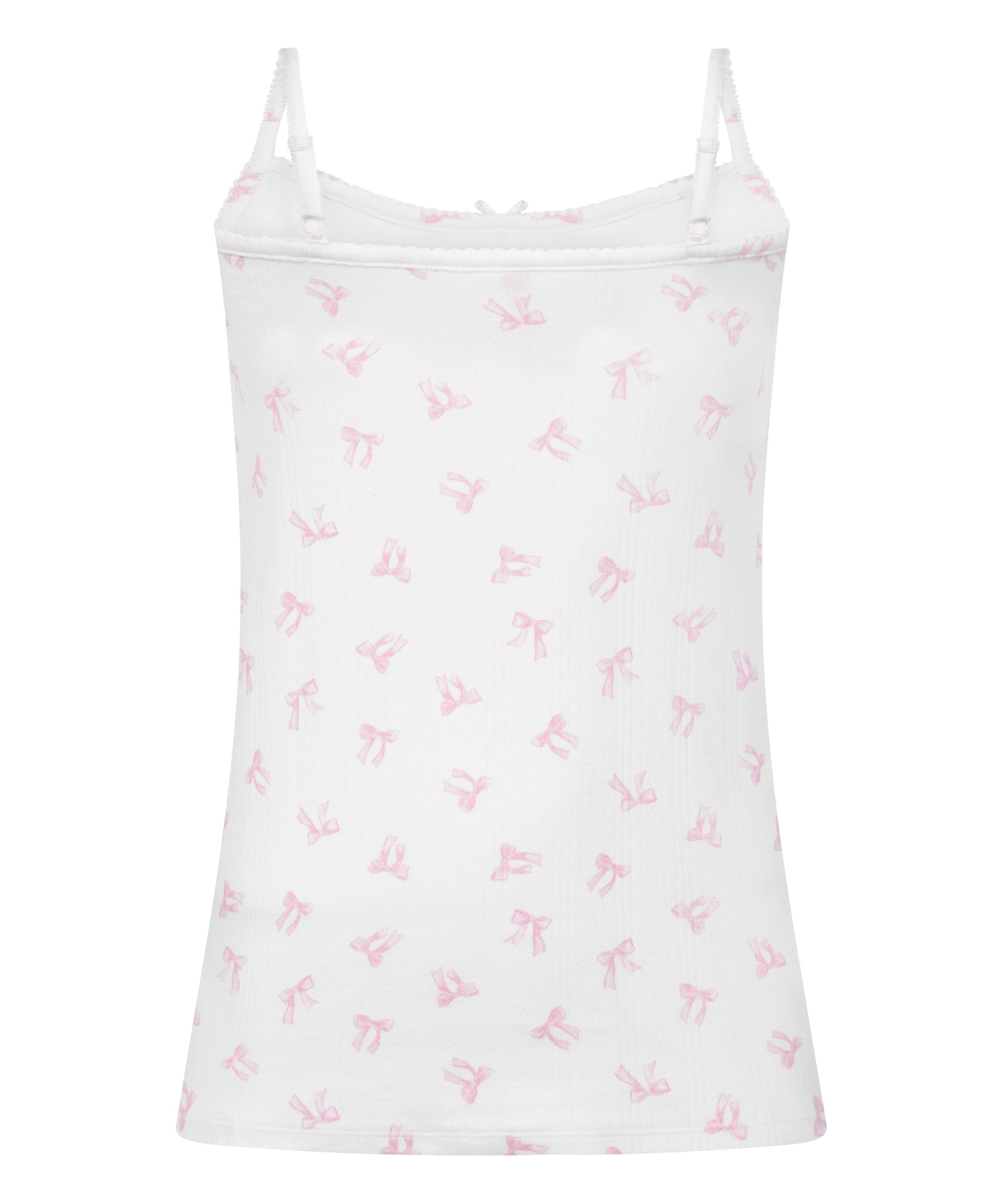 Soft, sweet and effortlessly, our Pointelle cami is a cozy essential. Made from pointelle fabric, it features a subtle textured pattern and a bow at the center adds a feminine touch. Combine with the matching shorts for a complete look.