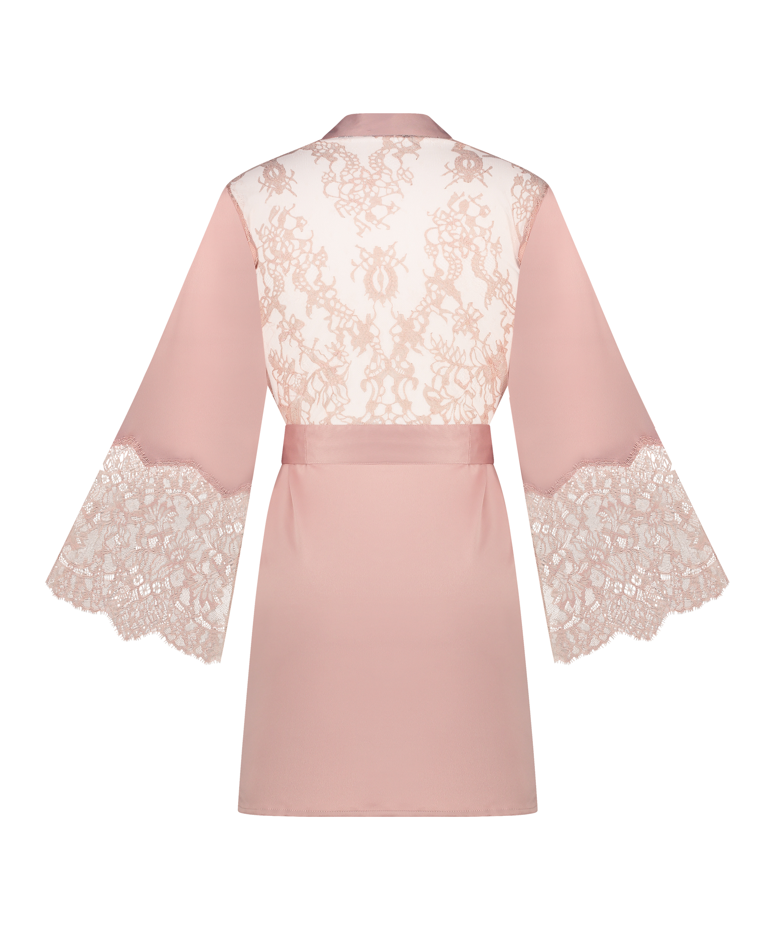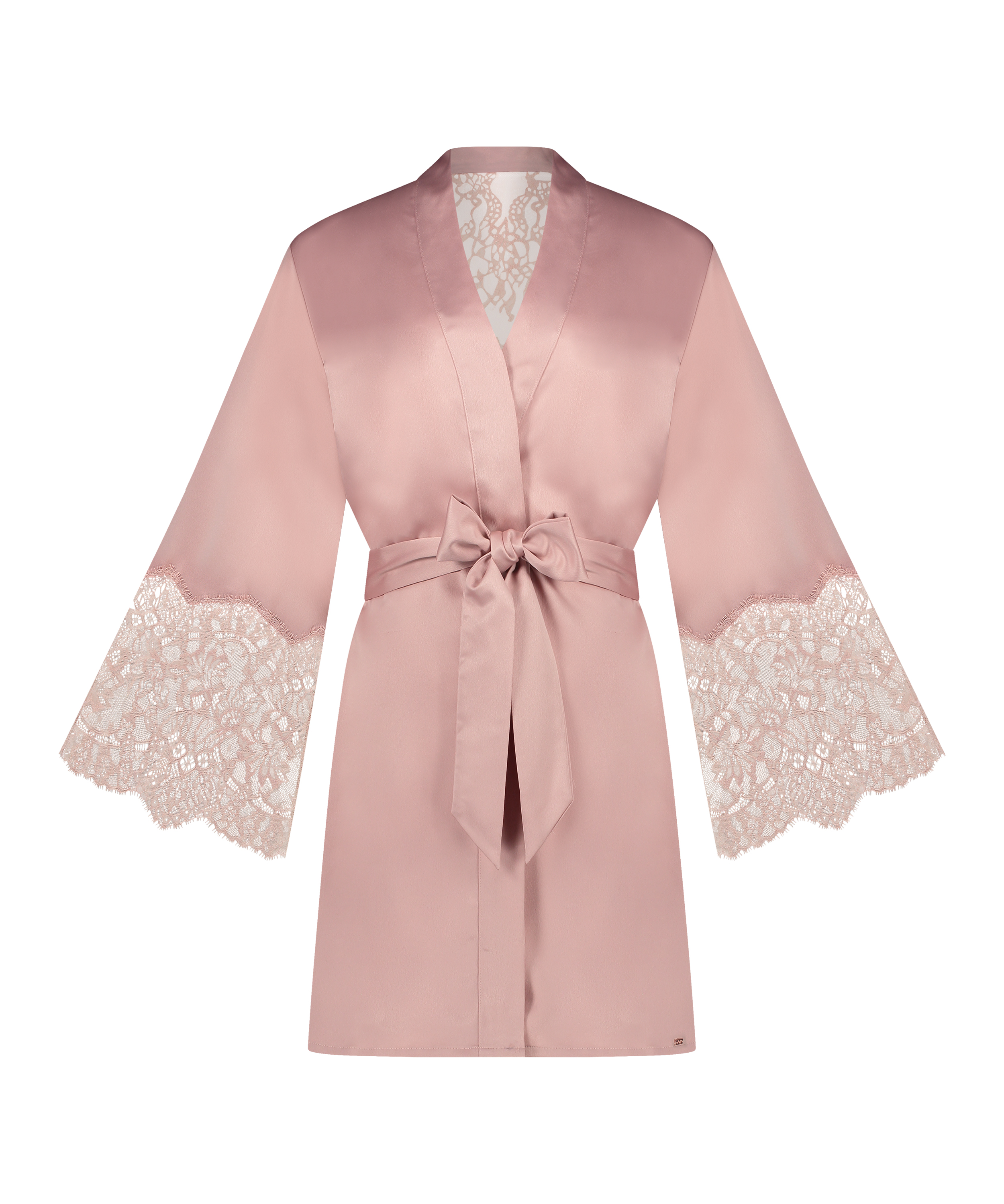 Go for an elegant look with this kimono! This incredibly luxurious kimono is made of satin and lace material which are both very soft materials. Combine it with a slip dress to complete the look. Part of the Noir collection.
