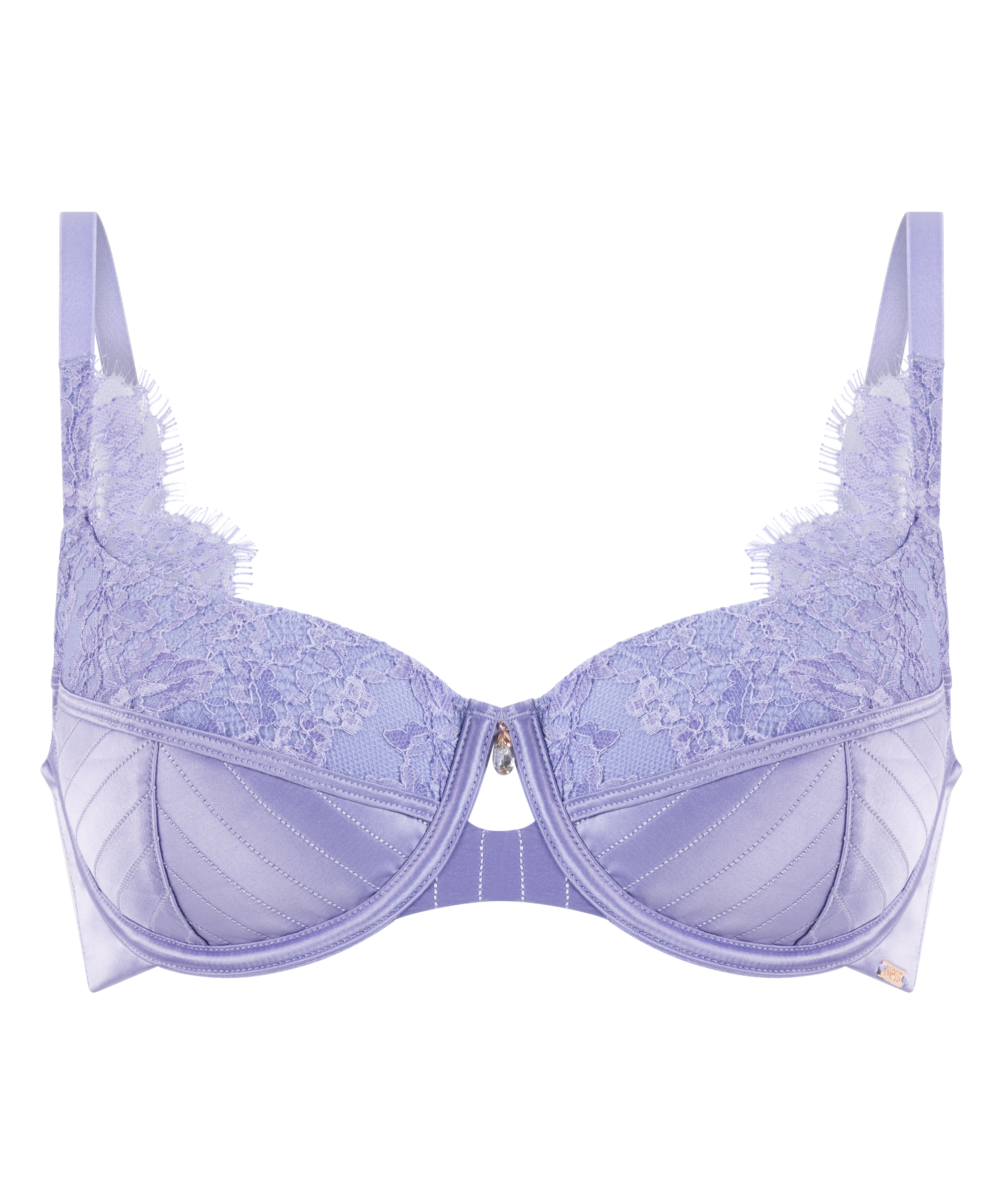 Indulge in timeless elegance with this bra. The satin fabric provides a luxurious feel and a flattering fit, while the lace accents add a romantic touch. Designed with padded cups and supportive underwires. Part of the noir collection.