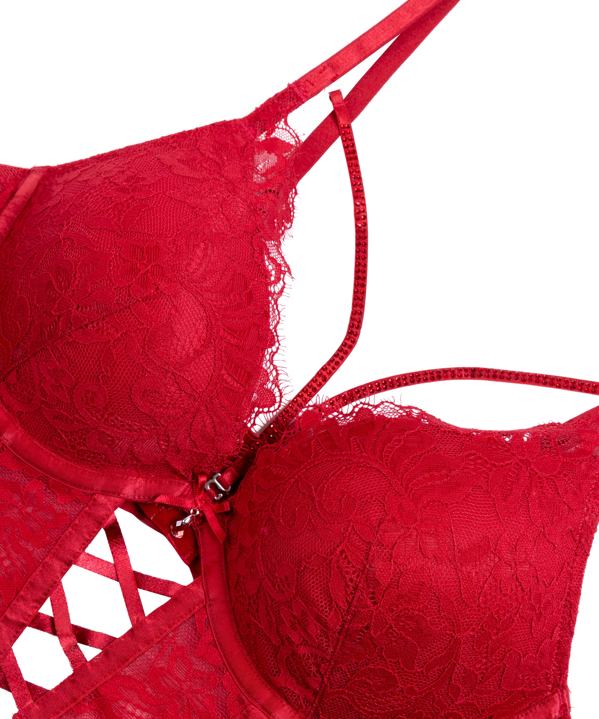 Charlotta Padded Underwired Longline Push-Up Bra - Red