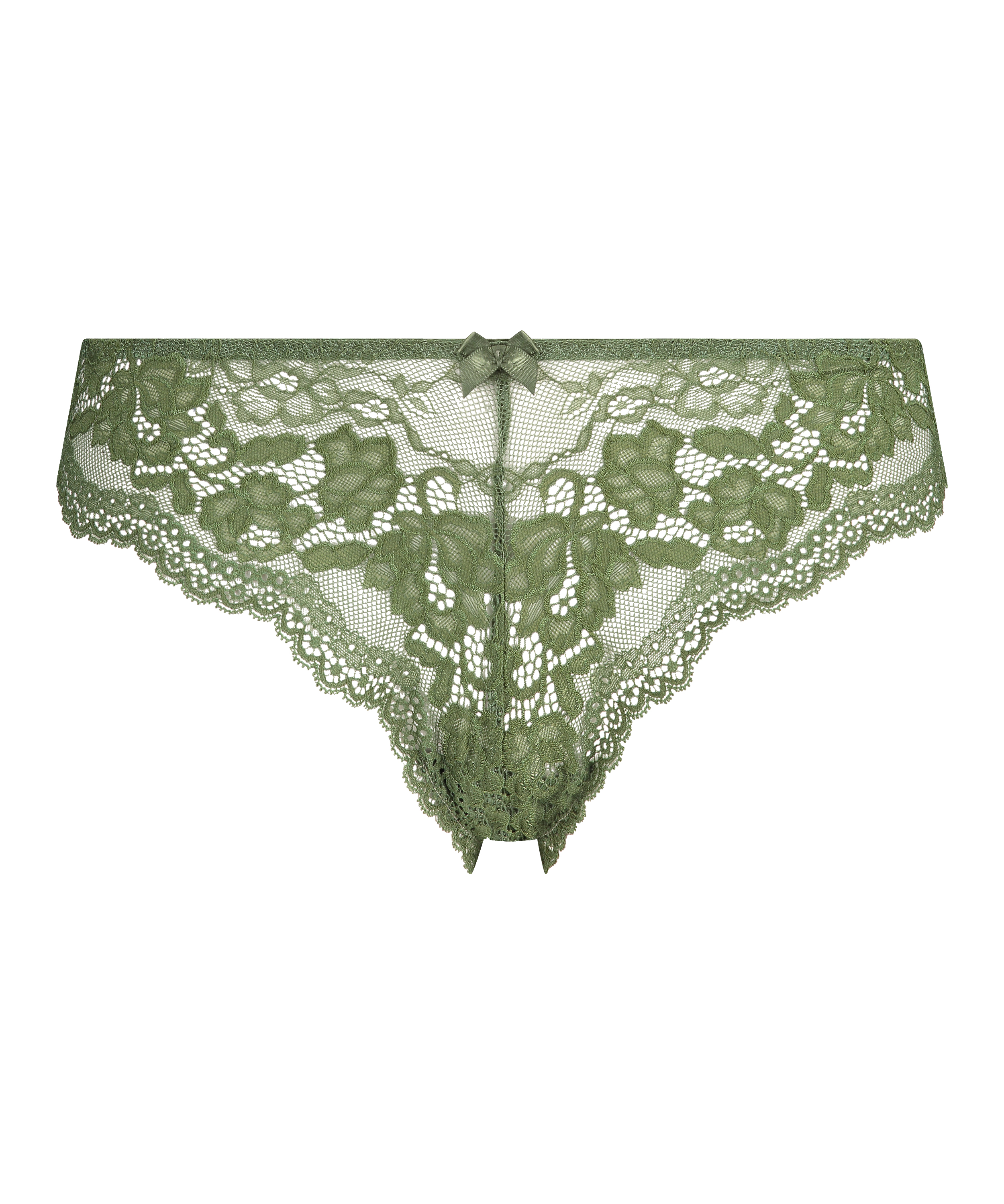 Feel sexy in this beautiful brazilian! The bottoms are made from lace and finished with a bow. Combine with other items from the collection for a complete look! This super comfortable essential has a new and improved hand feel, very soft and stretchable. With a beautiful flower pattern lace which makes this style extra fashionable.