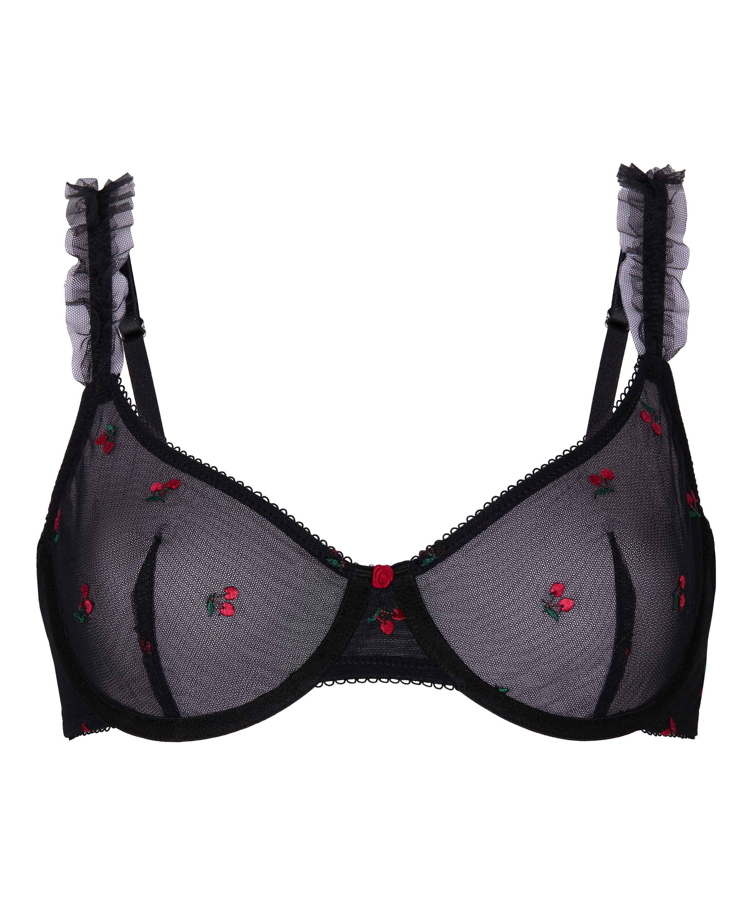 Fall in love with this delicate unpadded wired bra, designed for a naturally beautiful fit and everyday comfort. Crafted from sheer mesh, this bra features dainty embroidered details that add a sweet, feminine touch without feeling overdone. The underwire support offers gentle shaping while keeping the look light and airy. Finished with mesh ruffles on the adjustable straps, this piece feels playful, romantic, and effortlessly pretty. Perfect for those who love lightweight lingerie, breathable fabrics, and a natural silhouette with a hint of charm.