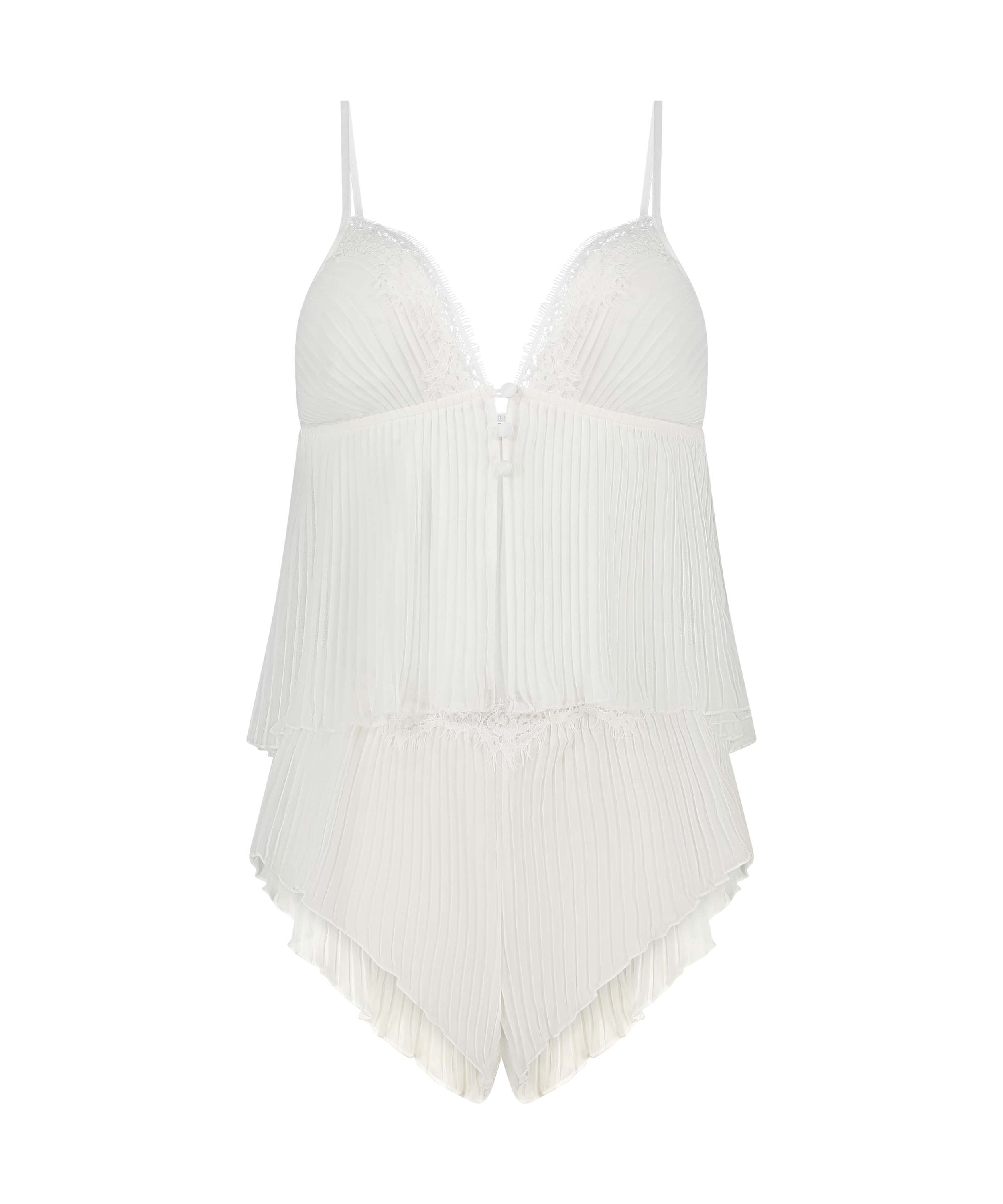 Chiffon Plisse Cami Set - White