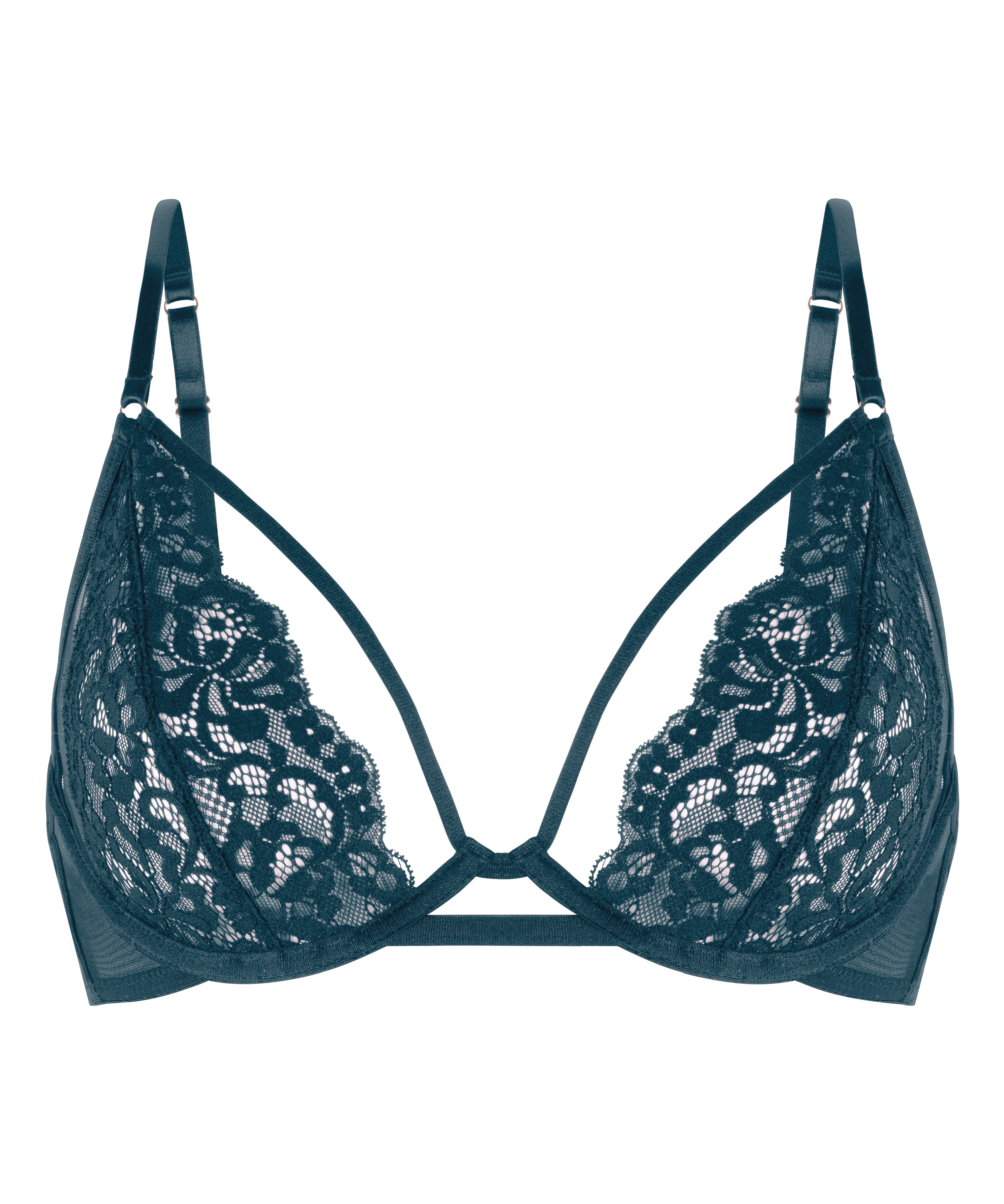 Look at this stunning bra! Lace designs all throughout the front and back. This amazing bra is unpadded and has adjustable shoulder straps which create the perfect fit. Combine with the matching items to complete the look. Part of the Private collection.
