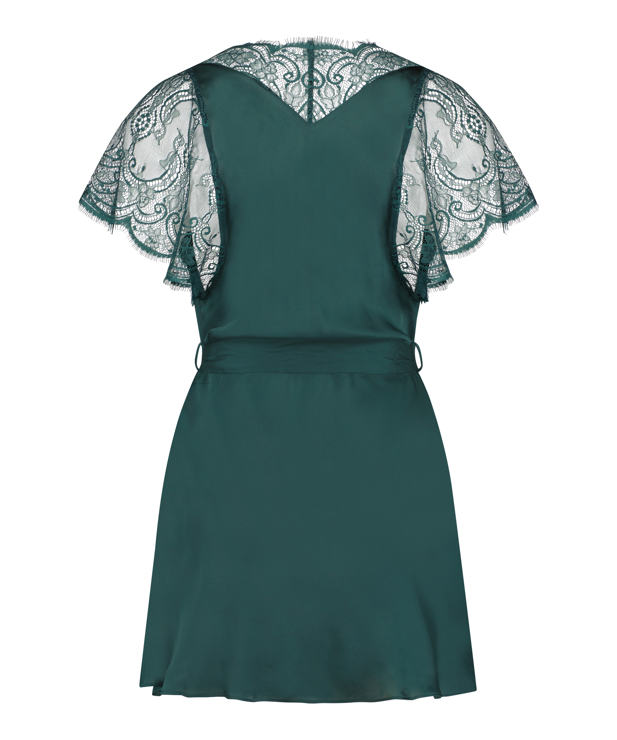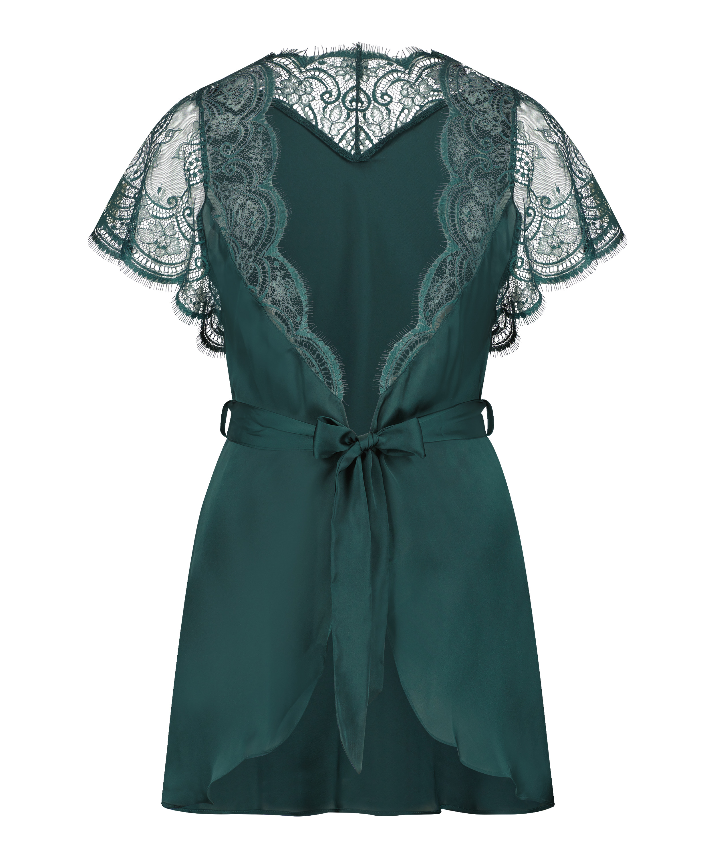 Sexy kimono with semi-transparent lace and mesh. This kimono has short sleeves and an elegant closed back. Part of the Private Collection.