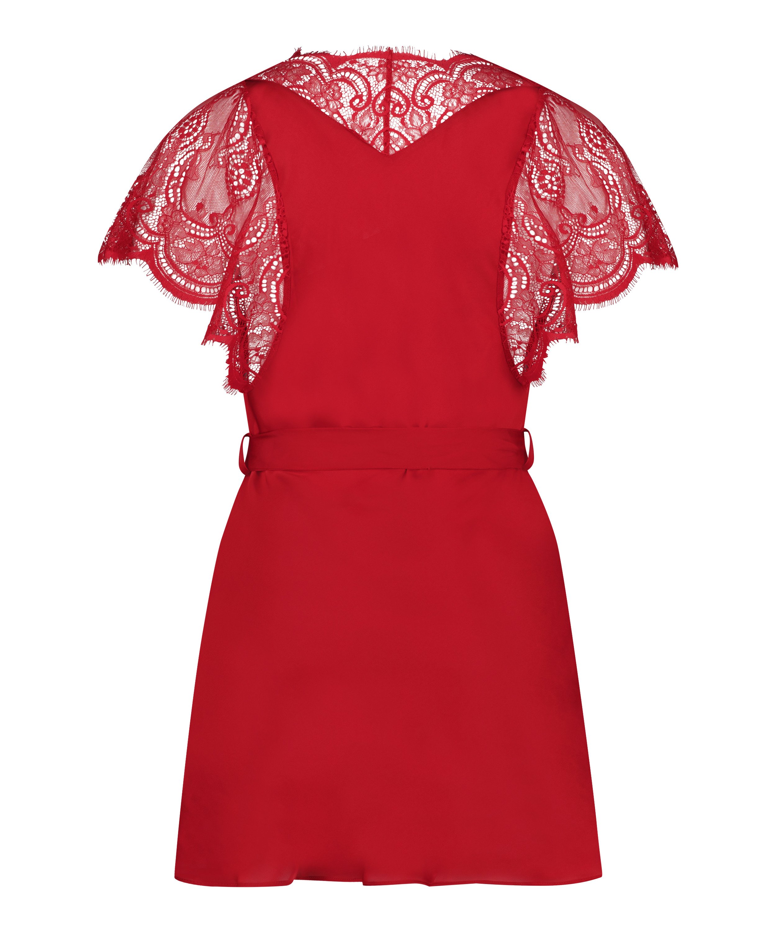 Sexy kimono with semi-transparent lace and mesh. This kimono has short sleeves and an elegant closed back. Part of the Private Collection.