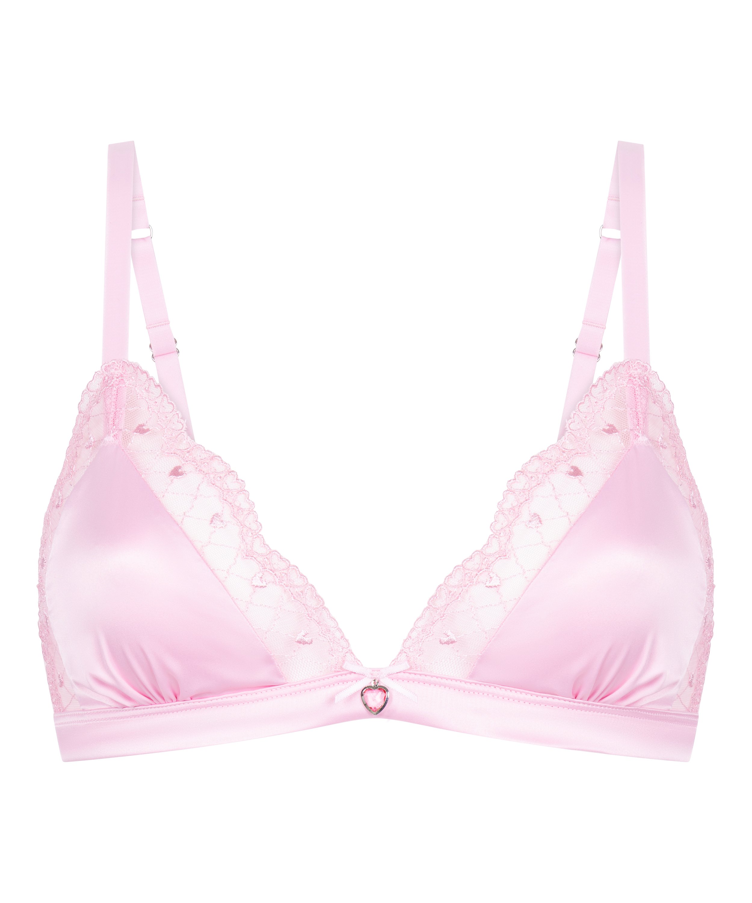 Shine bright in this satin triangle bralette featuring a delicate sparkly diamond charm at the center. The soft satin cups and minimal design give a chic, lightweight feel for everyday comfort. Perfect for layering under sheer tops or wearing solo for a flirty vibe. Match it with the pairing string for a fabulous look!