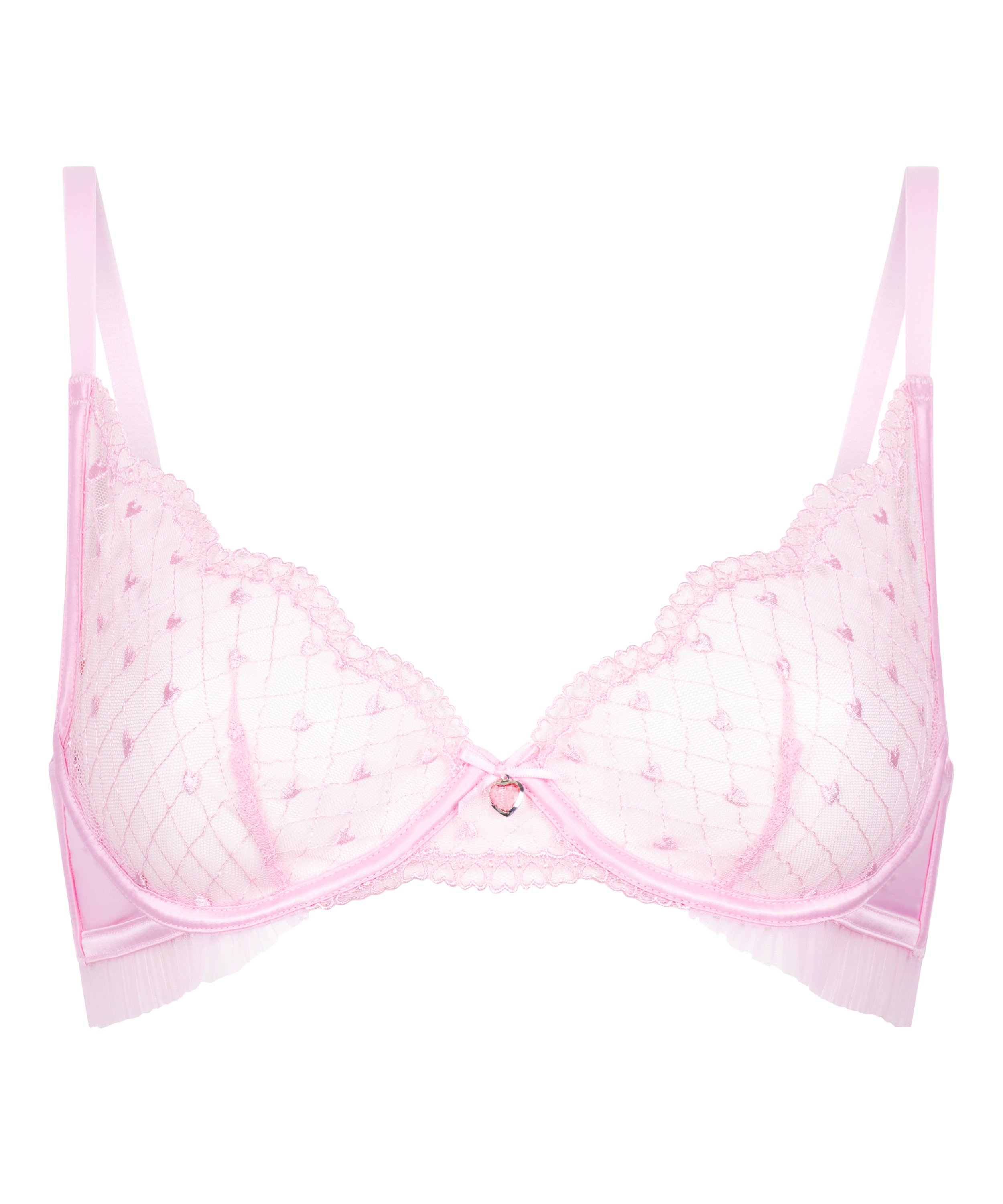 Turn up the romance with this mesh underwired bra featuring delicate heart embroidery. With its sheer cups and soft structure, this bra will offer you natural support with a lightweight feel, perfect for adding a bold yet feminine touch to your lingerie collection. Pair it with matching briefs for a sensual and coordinated look.
