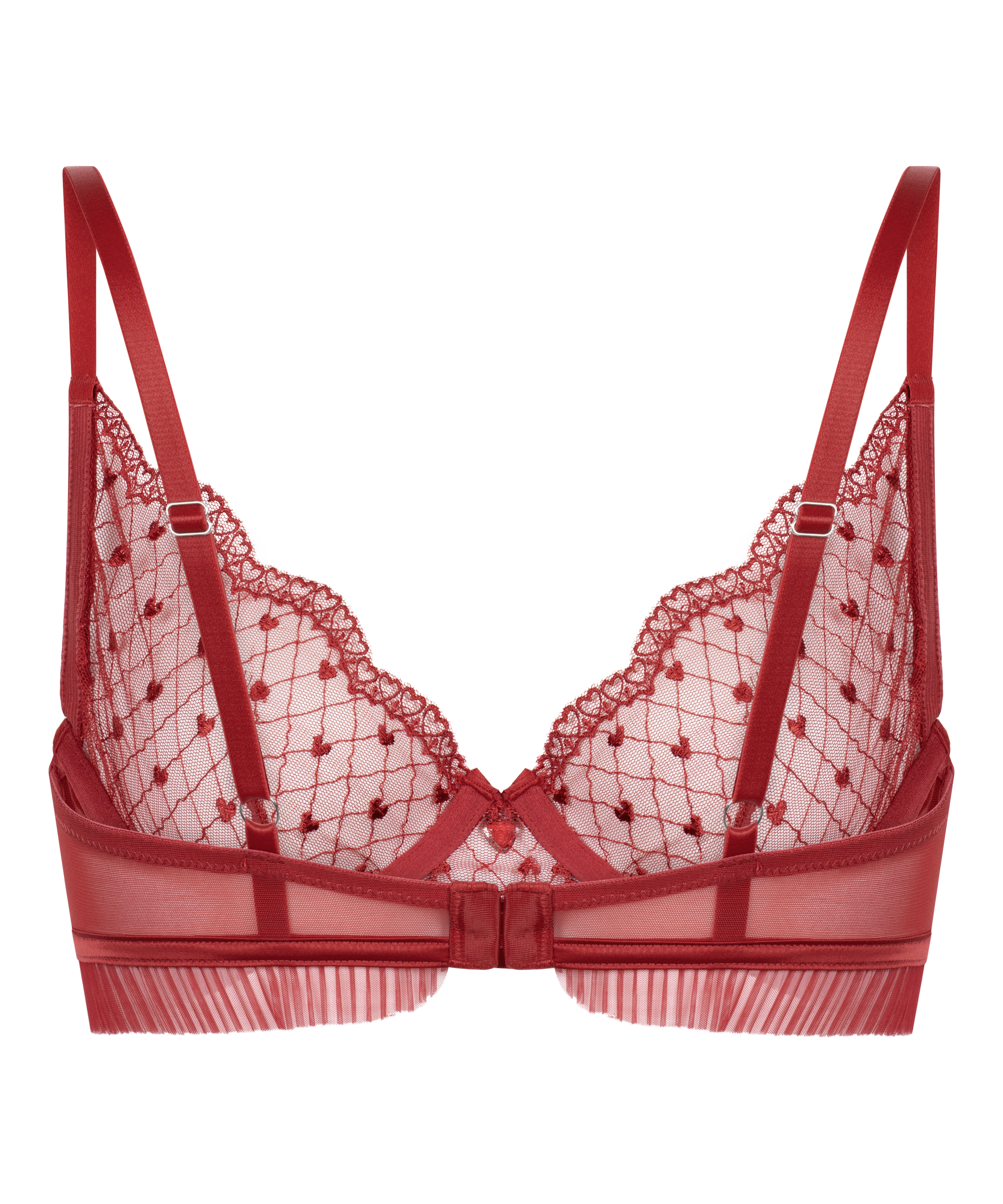 Turn up the romance with this mesh underwired bra featuring delicate heart embroidery. With its sheer cups and soft structure, this bra will offer you natural support with a lightweight feel, perfect for adding a bold yet feminine touch to your lingerie collection. Pair it with matching briefs for a sensual and coordinated look.