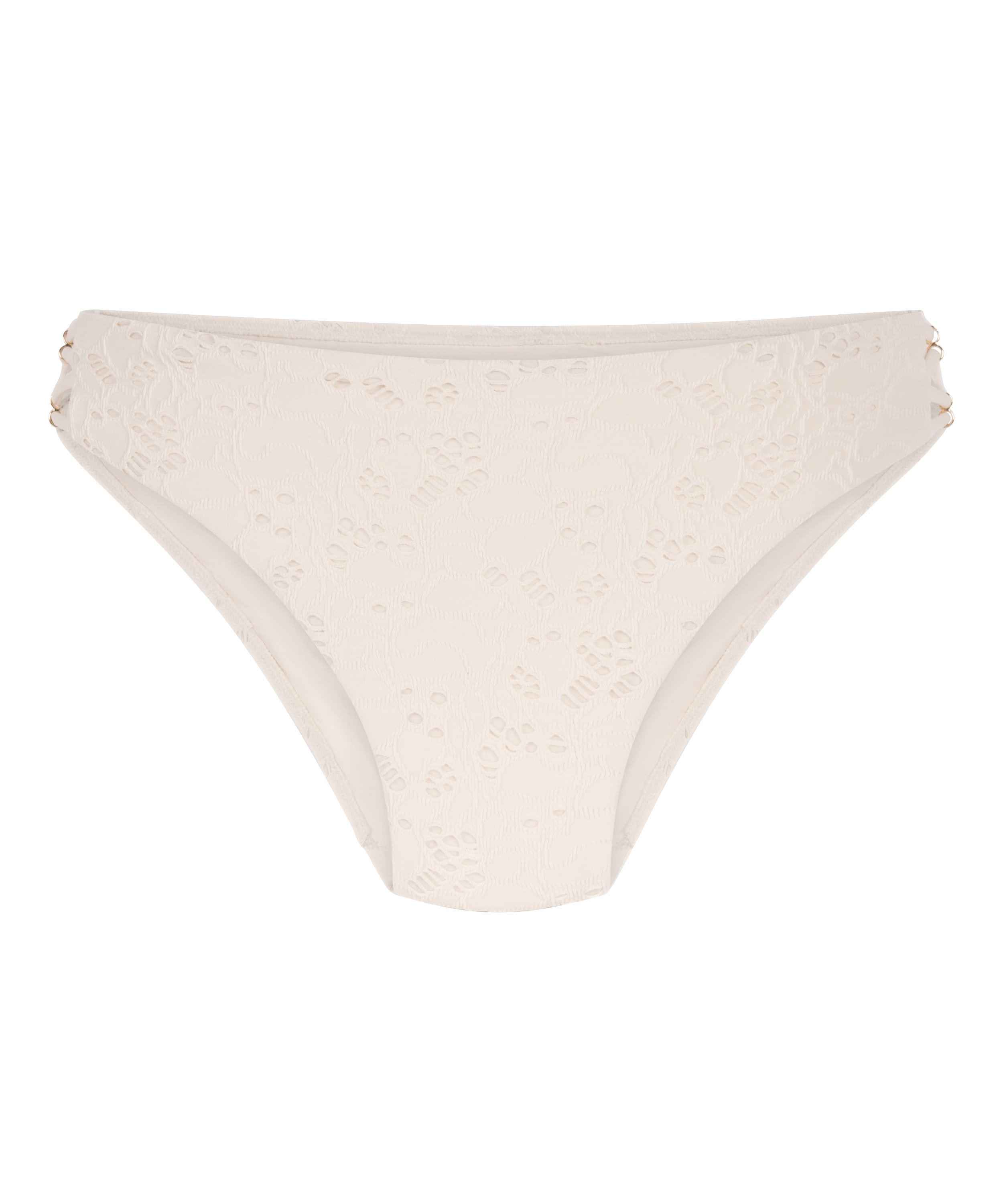 You can combine these bikini bottoms with many of our swimwear items. The string details with gold accents on the sides add a stylish and elegant touch. Perfect for creating a chic and coordinated beach look.