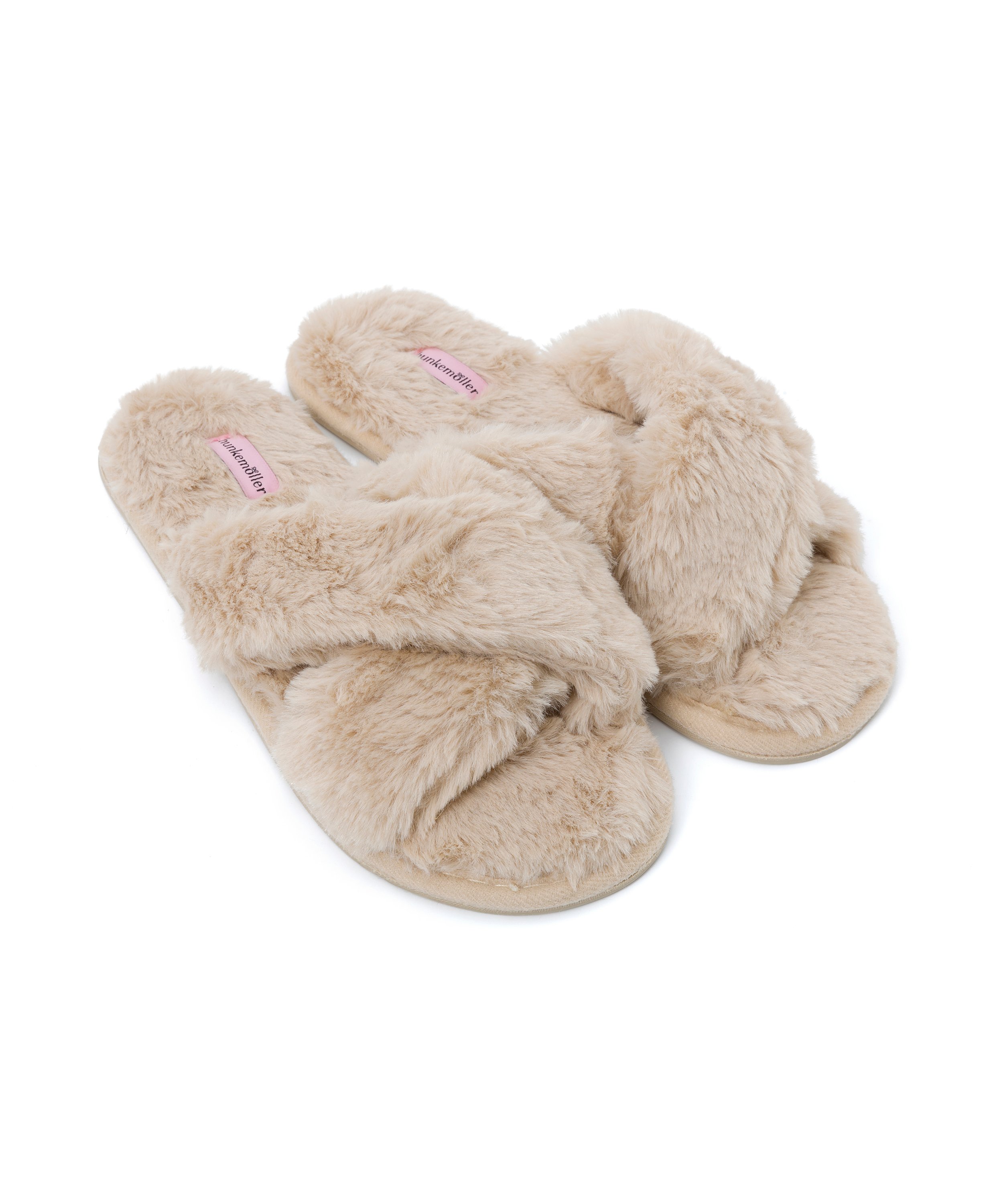 These sandals feature sturdy soles to provide good support for your feet. They are finished with crossed fake fur straps.
