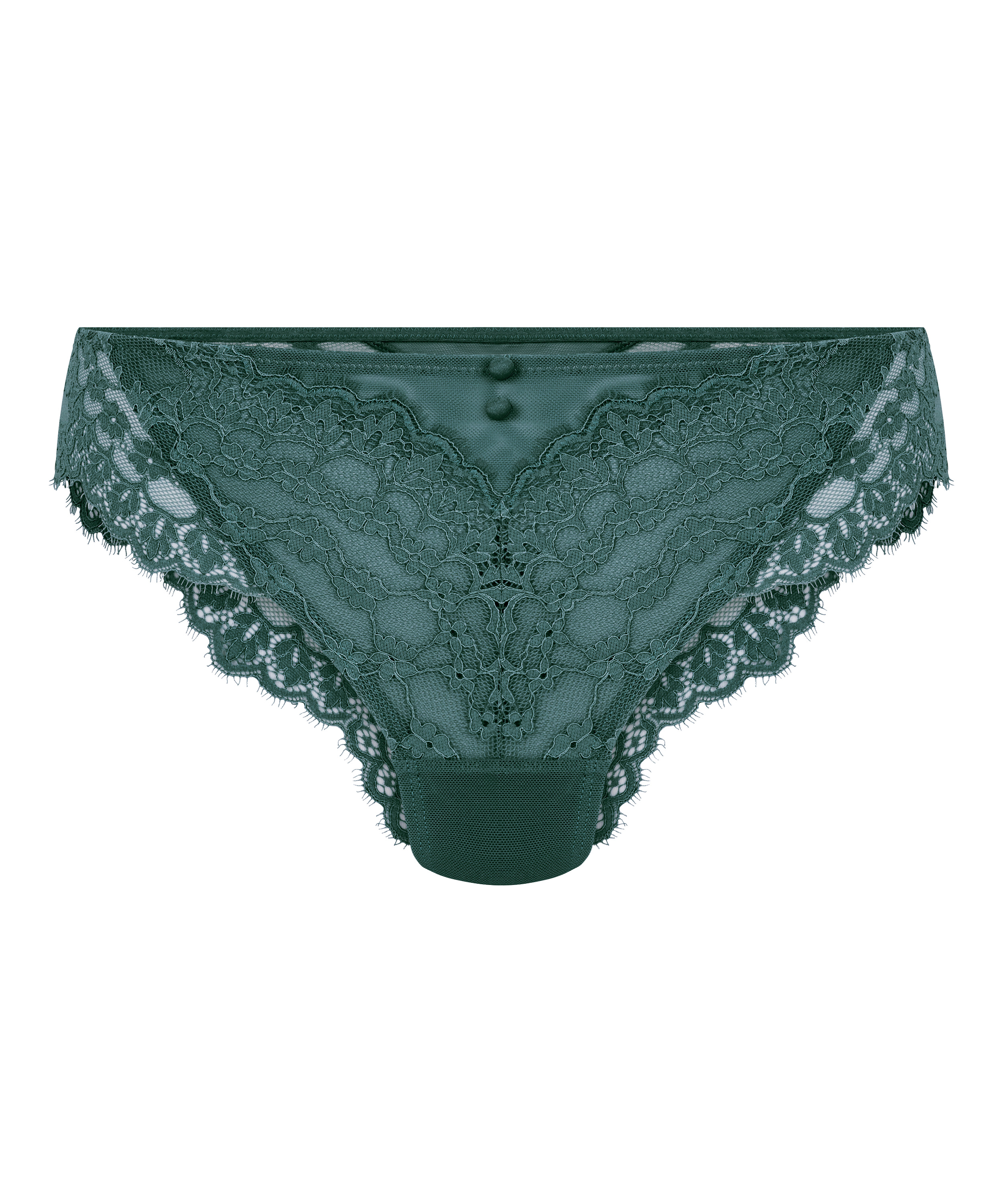 These Brazilian knickers are super sexy! They feature a lot of lace, as well as mesh on the back. Combine with matching items for a complete look!