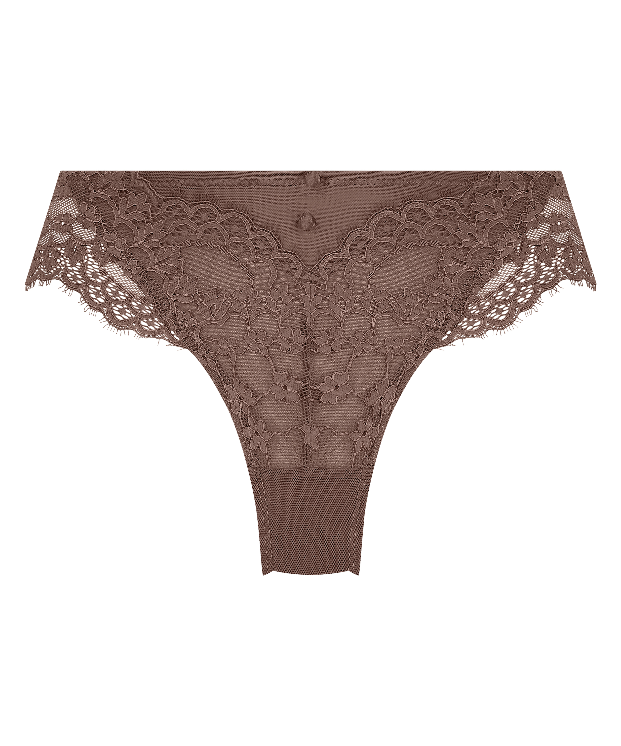 These Brazilian knickers are super sexy! They feature a lot of lace, as well as mesh on the back. Combine with matching items for a complete look!