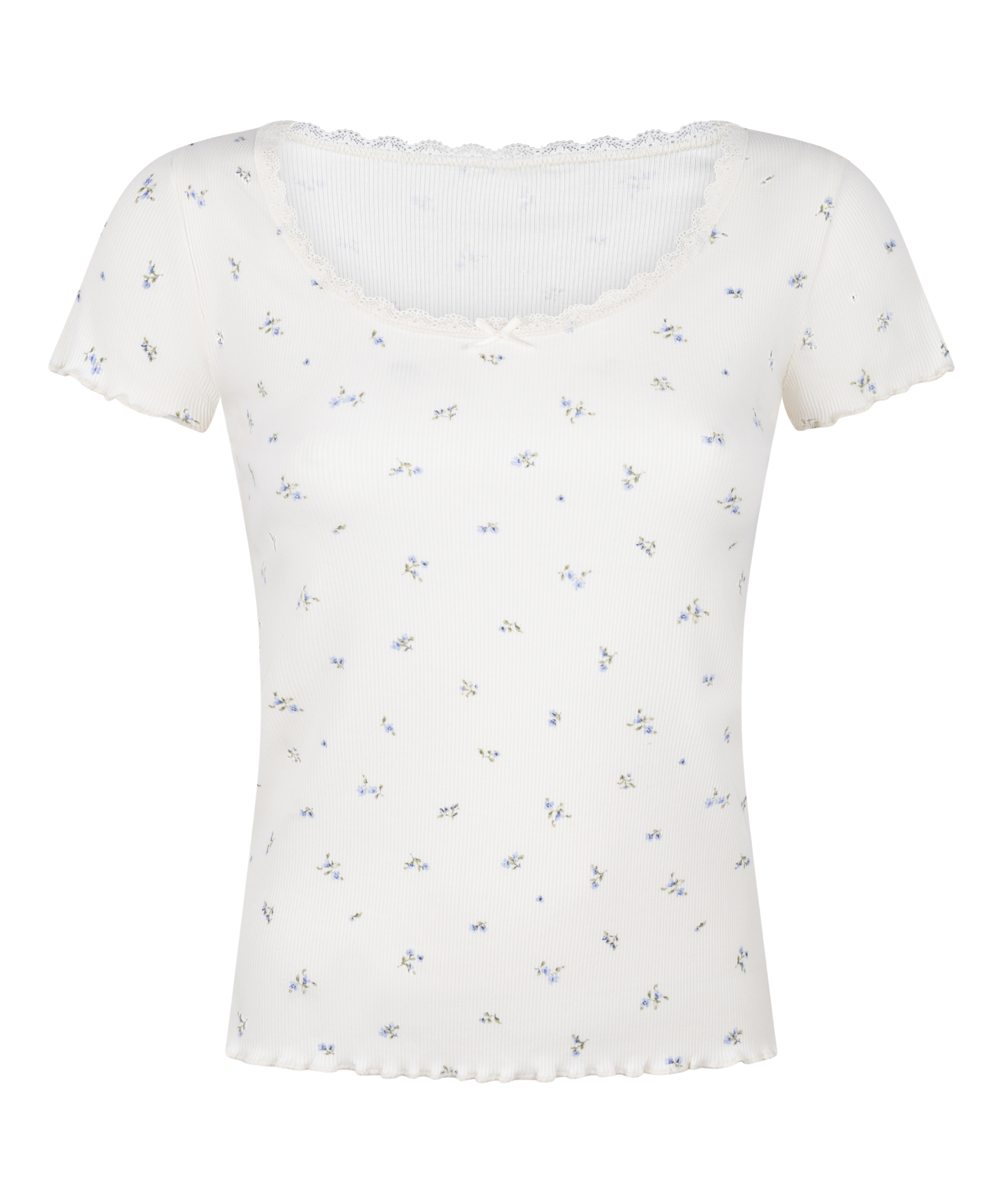 Delicate comfort with this pointelle pajama top which features a soft, breathable knit with a round neckline adorned by romantic lace detailing for an elegant touch. Designed with short sleeves for a relaxed fit, it pairs perfectly with your matching wide-leg pants for a chic loungewear look. Ideal for cozy nights or stylish mornings.