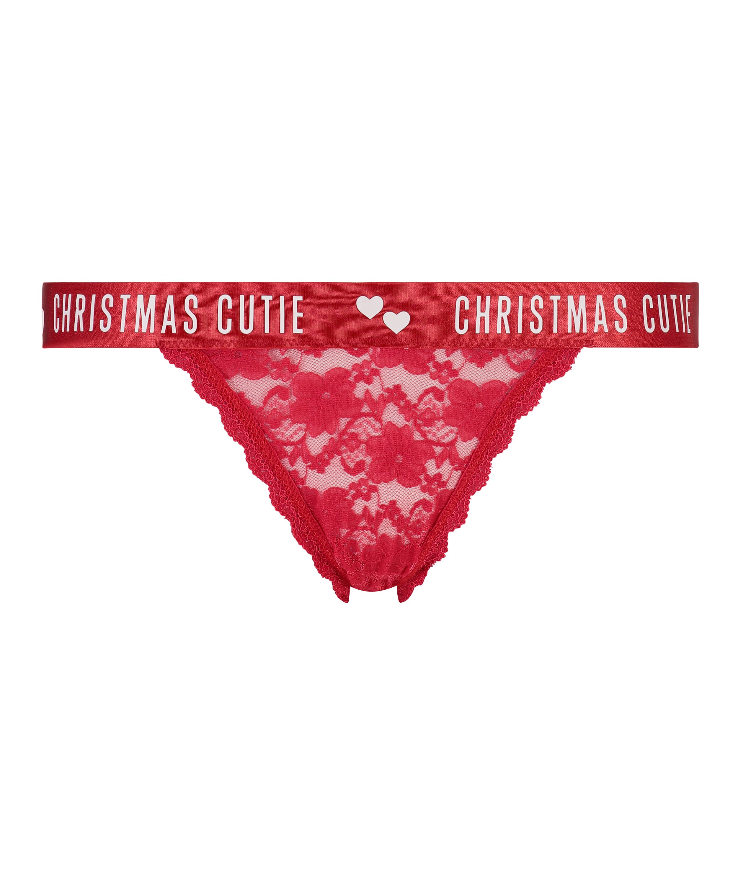 Hey Christmas cutie! Complete your Christmas collection with this thong. This all-over lace thong is stunning. Combine with a matching bralette for a complete set!