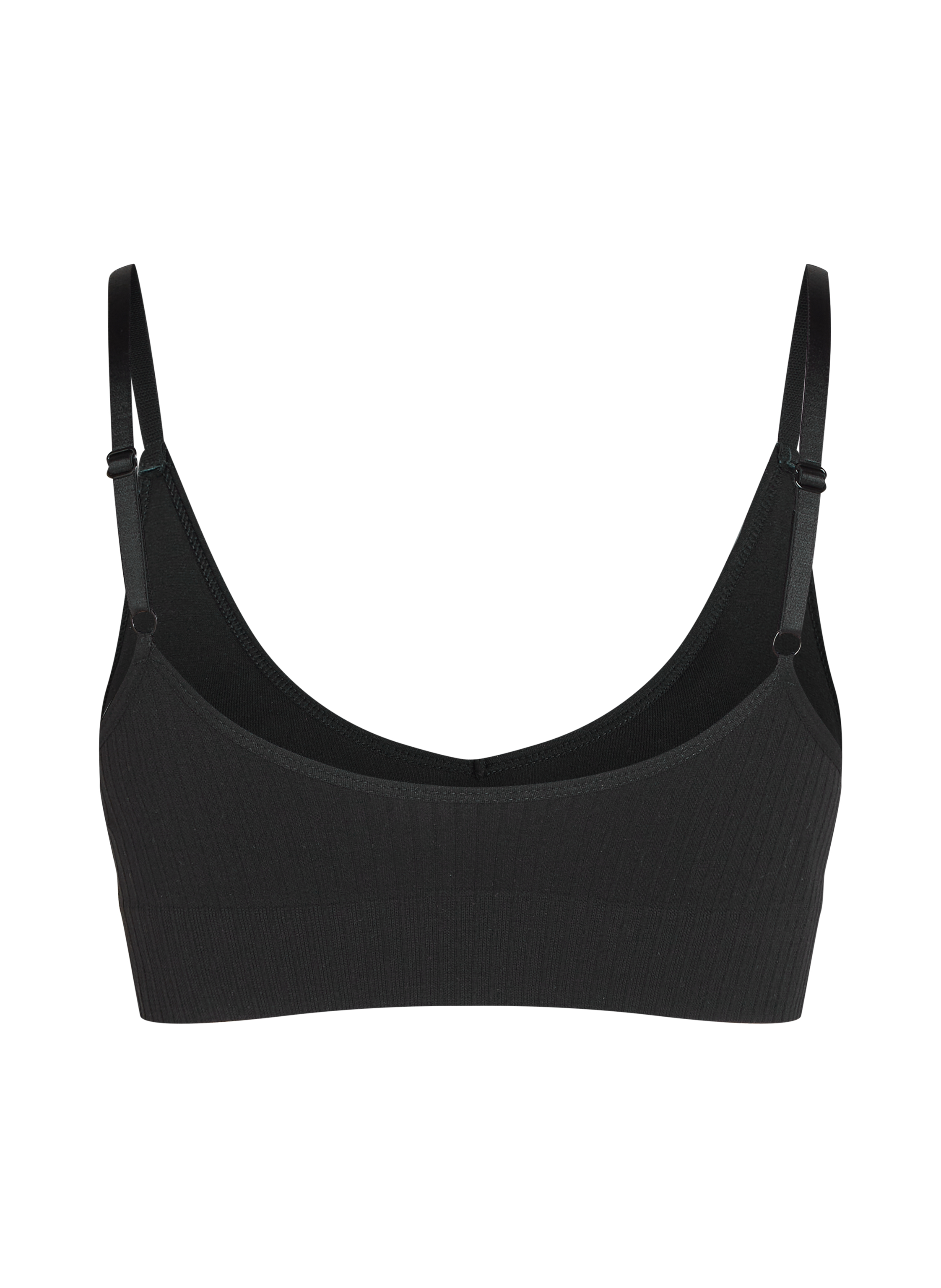Go for comfort! This bralette supports you with a comfortable rib structure and a wide underband and is perfect to wear under tops. With removable lining. Complete your look by styling with matching high-waisted knickers or a thong.