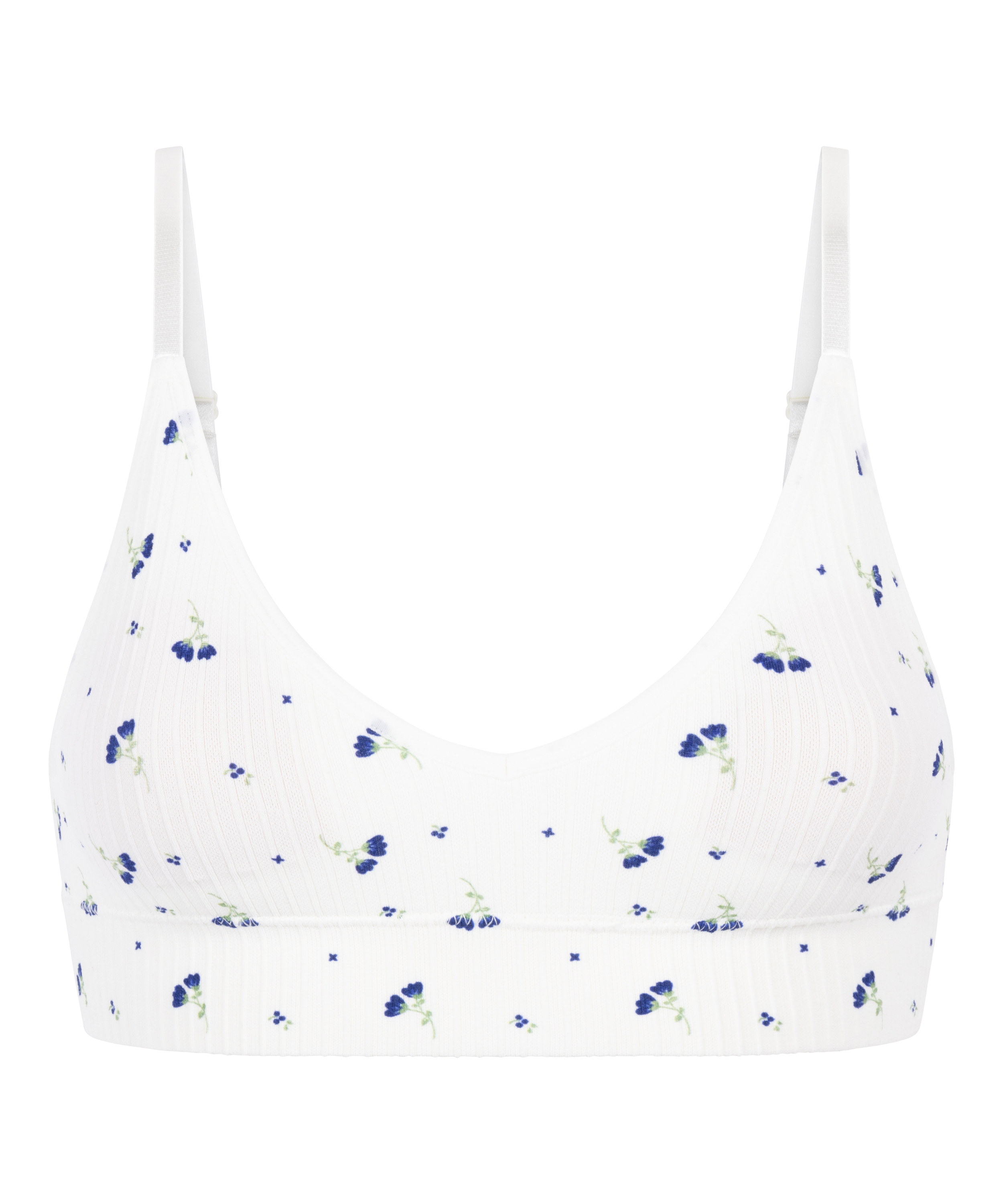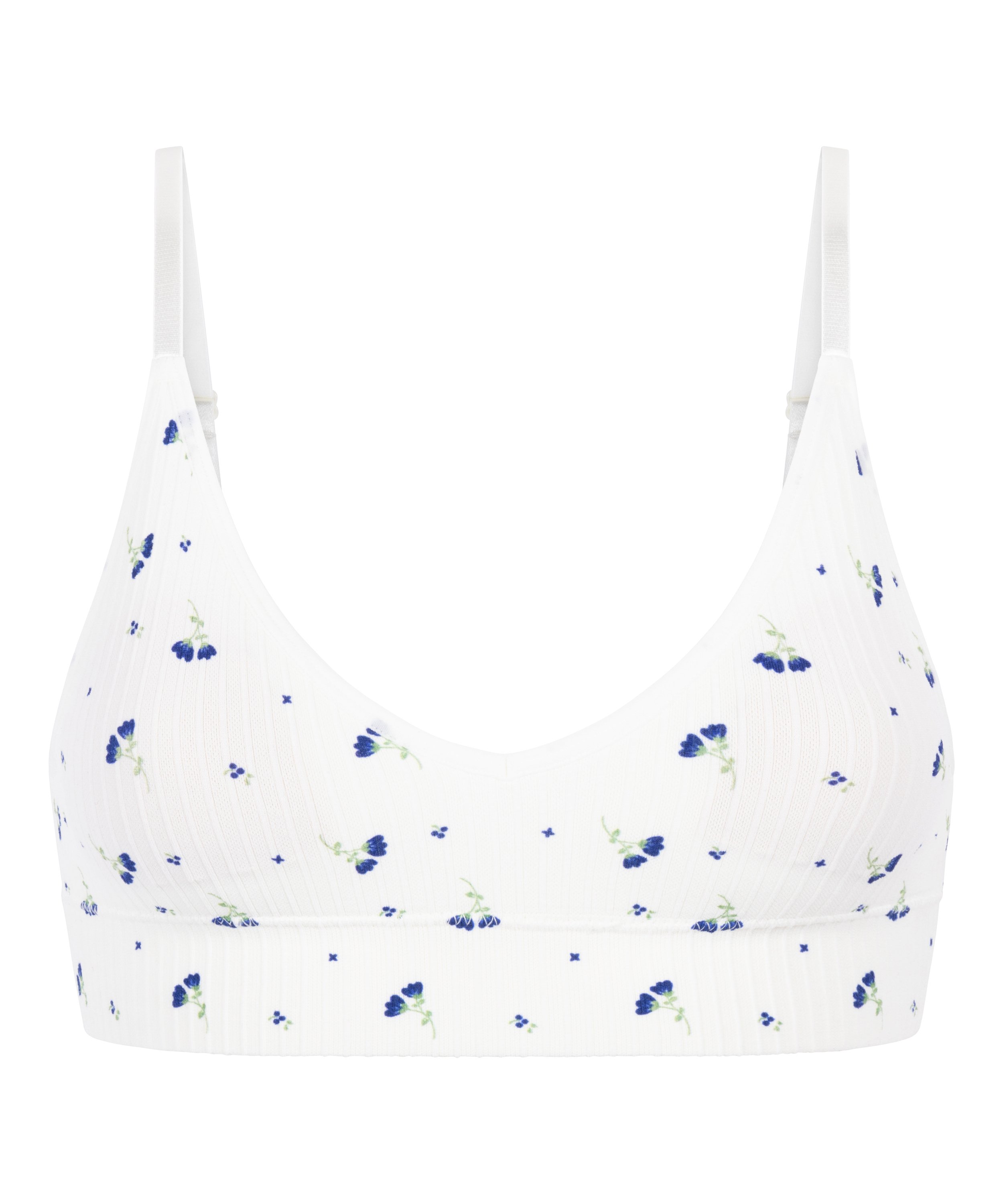 Go for comfort! This bralette supports you with a comfortable rib structure and a wide underband and is perfect to wear under tops. With removable lining. Complete your look by styling with matching high-waisted knickers or a thong.