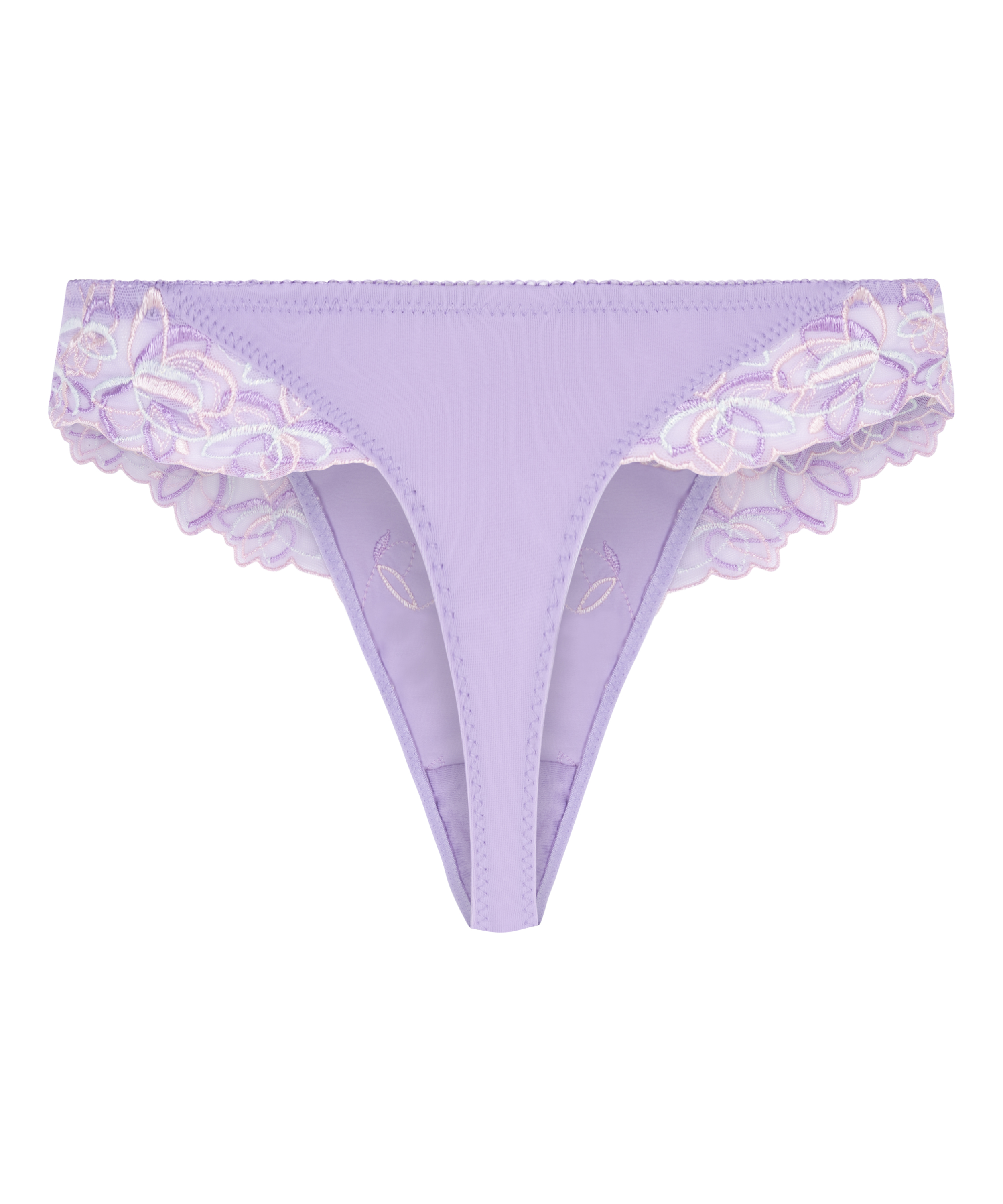 These thong shorts with floral embroidered lace are a positive way to start your day. The front is finished with semi-transparent fabric.