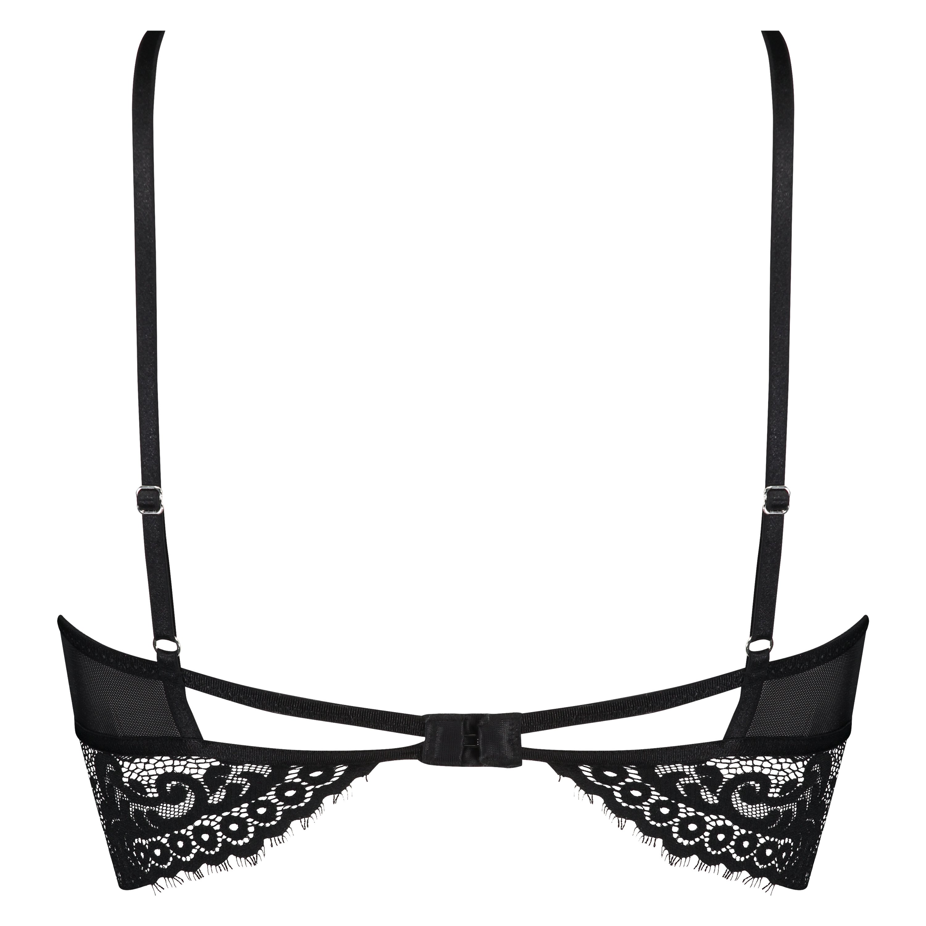 Feel super sexy in this bralette! It's fully lined with lace. The strappy details and the bow on the front make the bralette complete! Complete the picture with matching knickers. This bralette is not padded.
