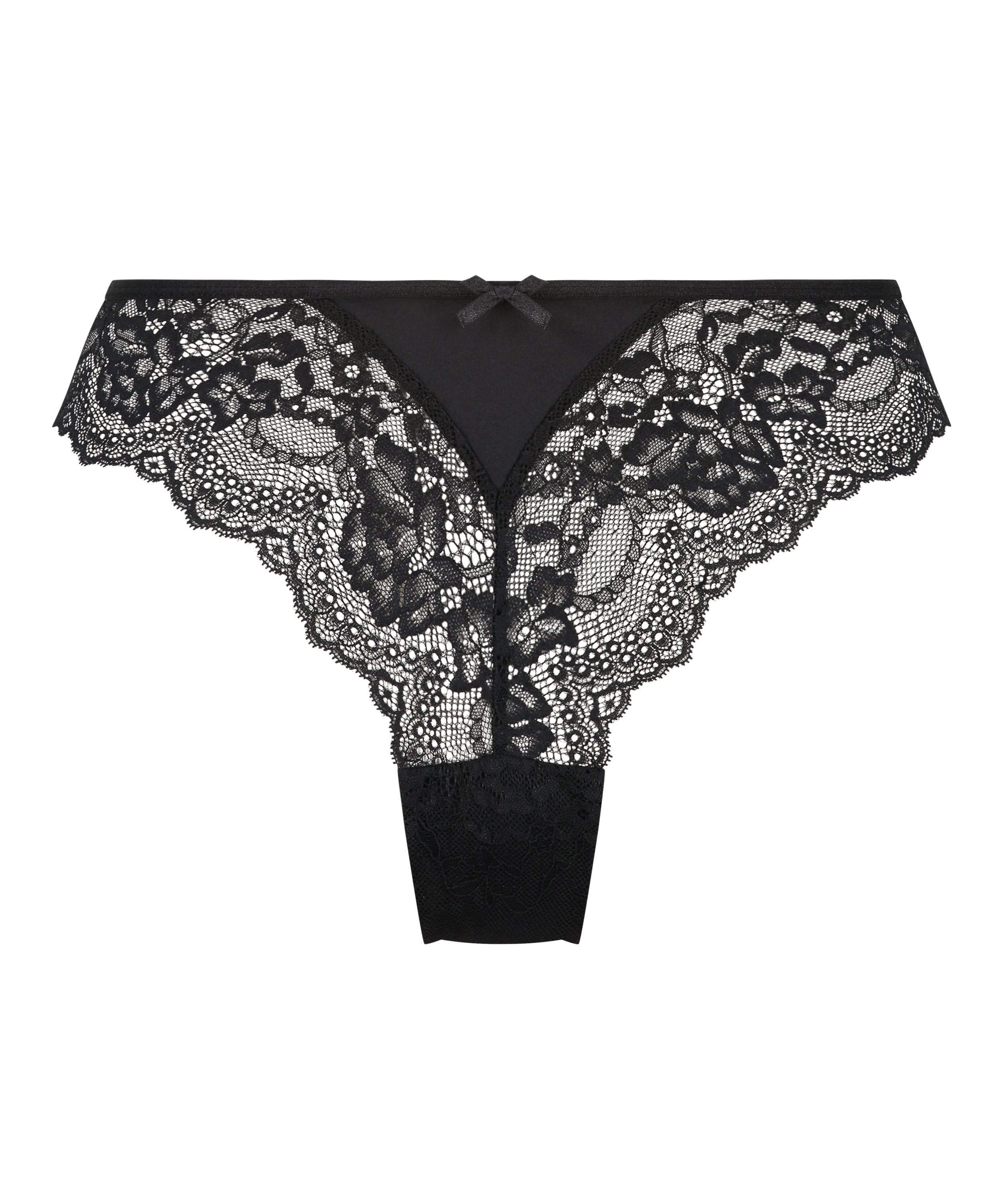Don't miss out on this super comfortable brazilian! With an all-over lace look, along with microfiber details, and it is finished off with a cute bow. Pair with your favorite bra!