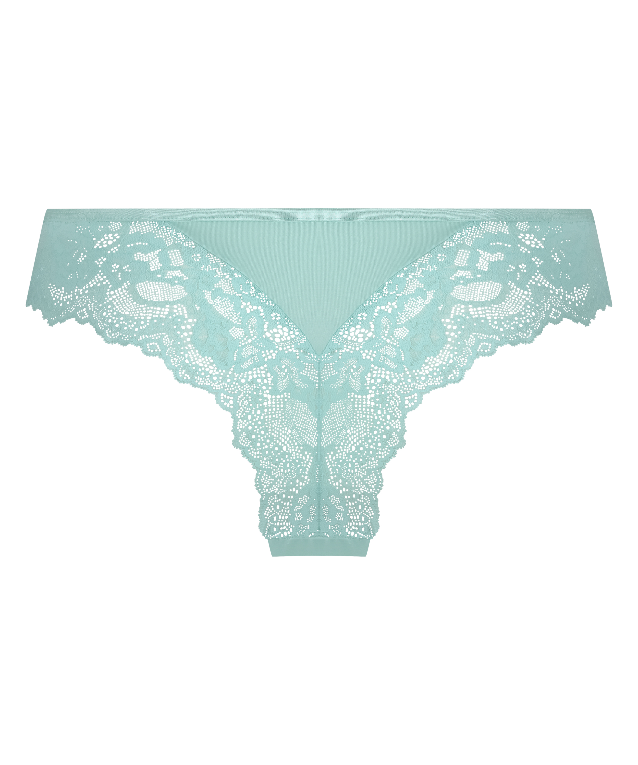 Don't miss out on this super comfortable brazilian! With an all-over lace look, along with microfiber details, and it is finished off with a cute bow. Pair with your favorite bra!