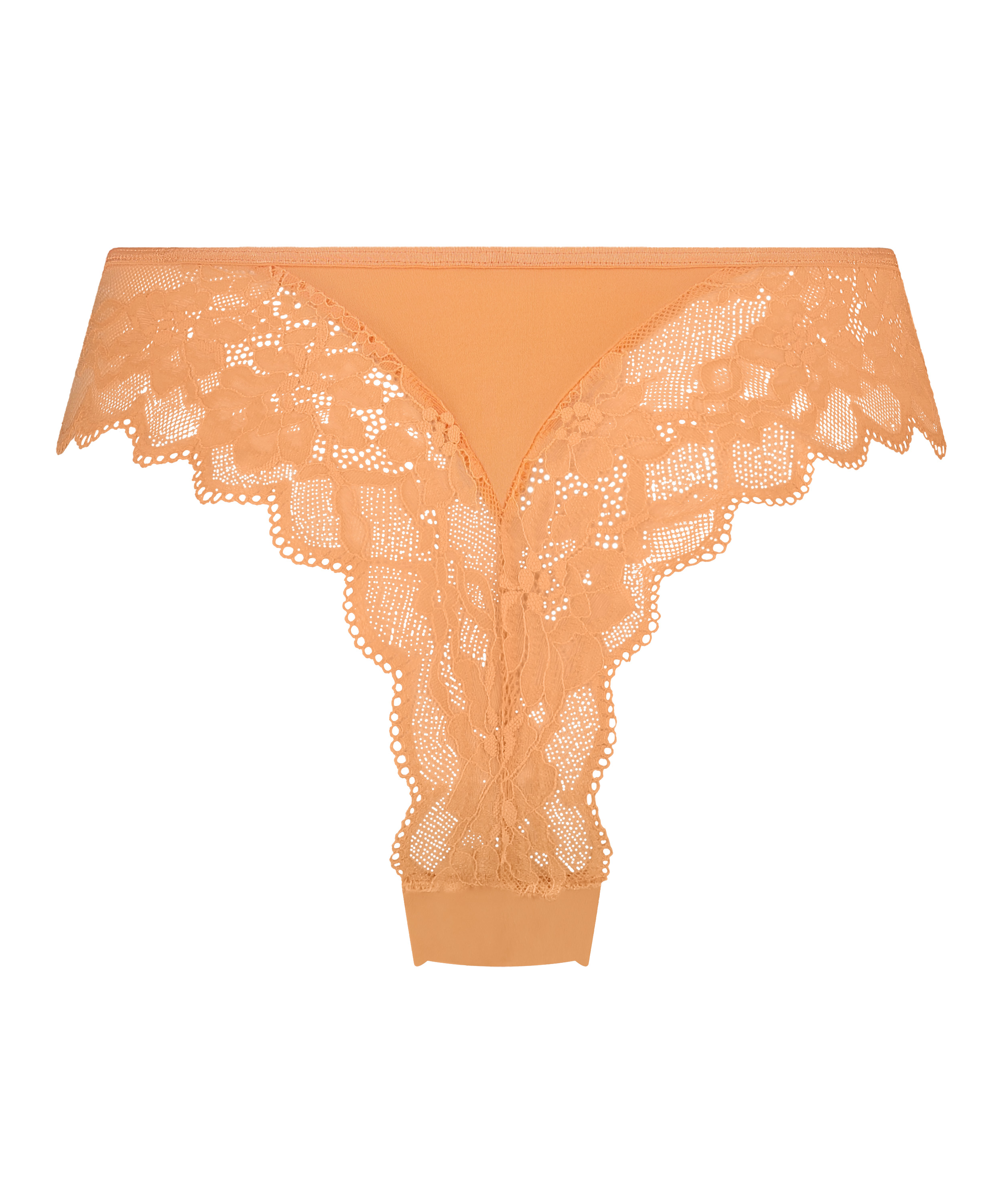 Don't miss out on this super comfortable brazilian! With an all-over lace look, along with microfiber details, and it is finished off with a cute bow. Pair with your favorite bra!