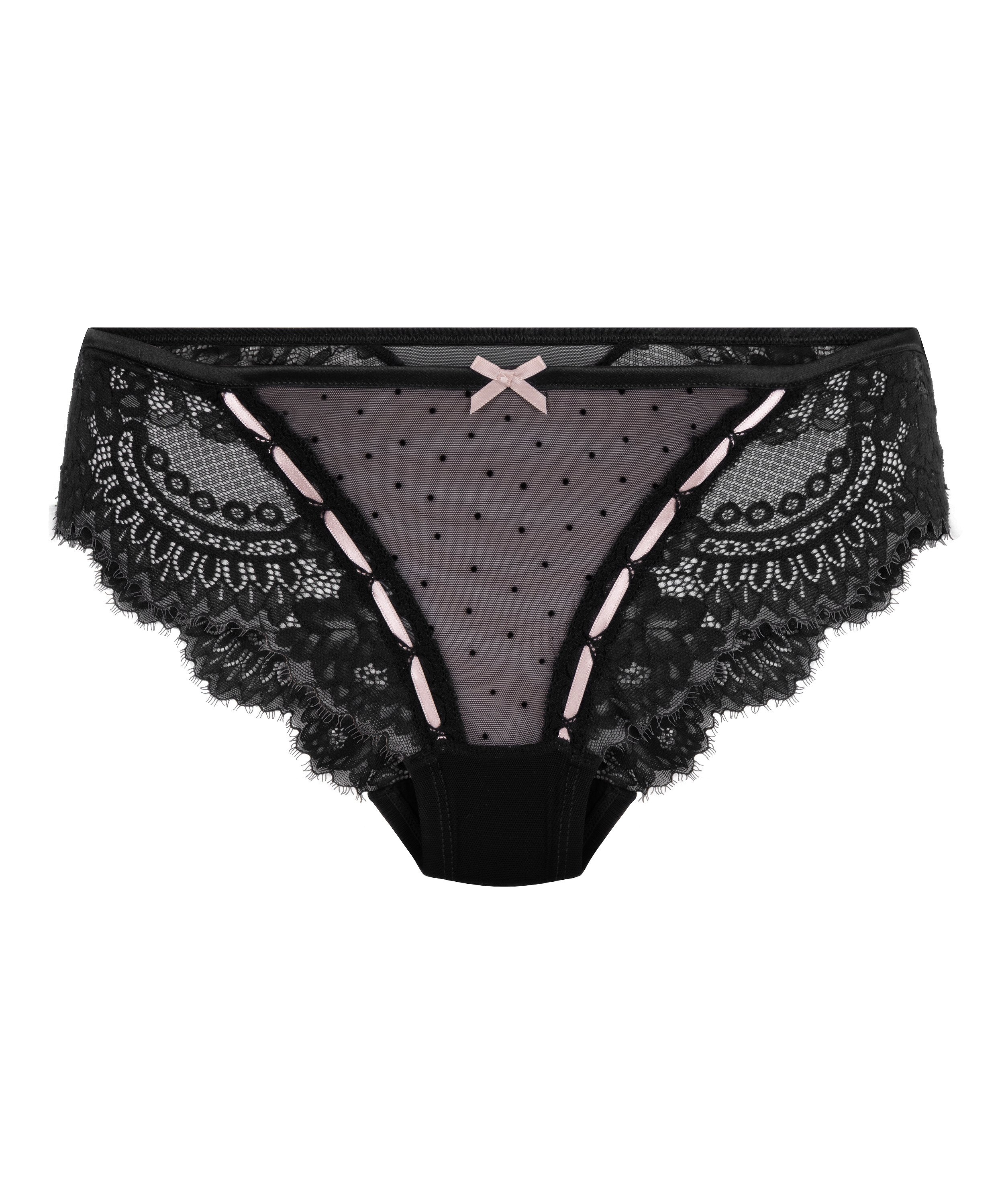 Flatter your curves with our Dorothy brazilian. The front features dotted mesh, while te back is made fromlace that hugst your shape with a smooth, barely-there feel. Combine with a matching bra for a complete look.