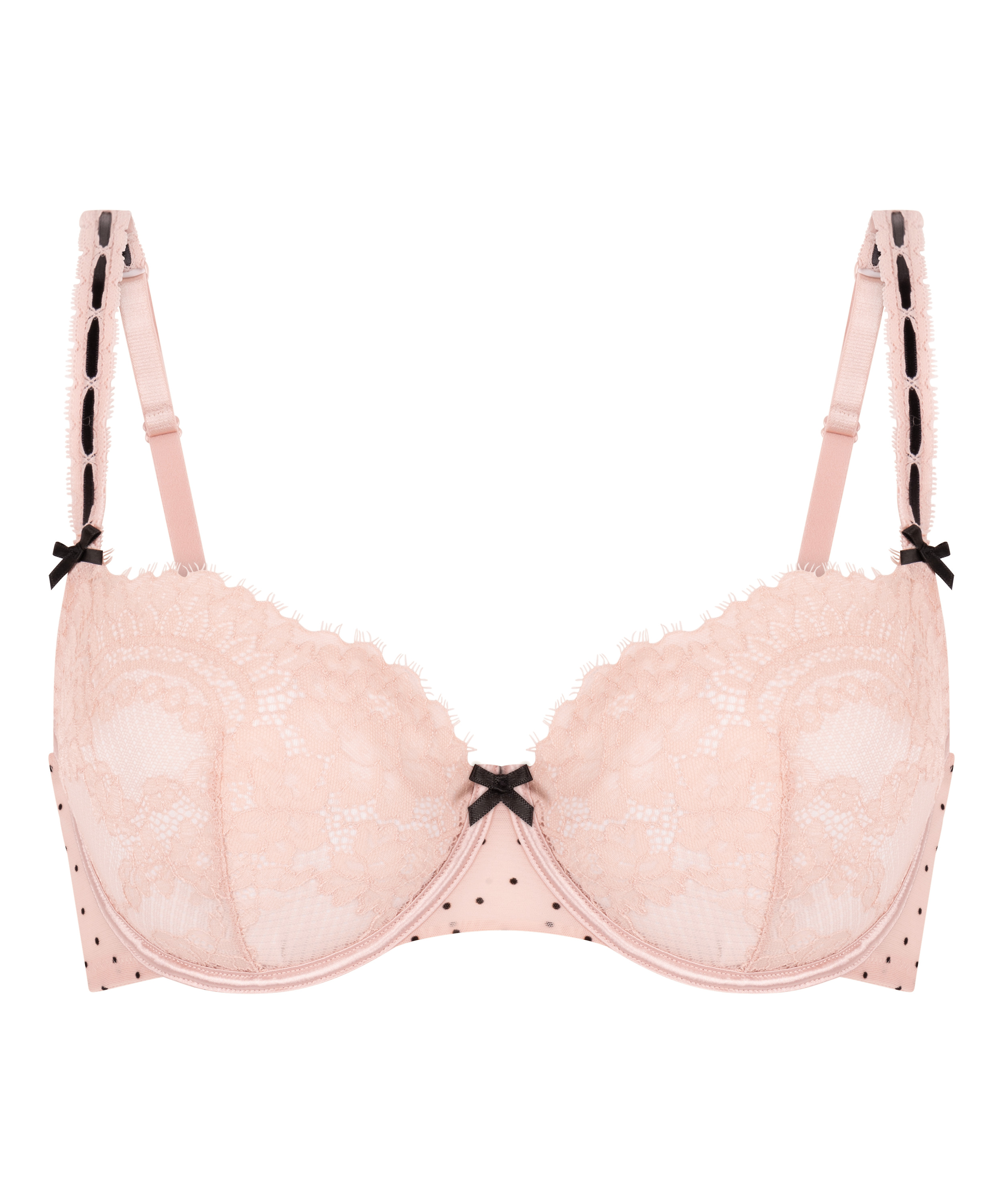 Delicate and detailed, our Dorothy bra offers light support. The cups feature lace, offering a soft feel. Underwire provides gentle lift and shap, while the bows at the straps and center front adds a final touch. Combine with the matching bottom for a complete look.