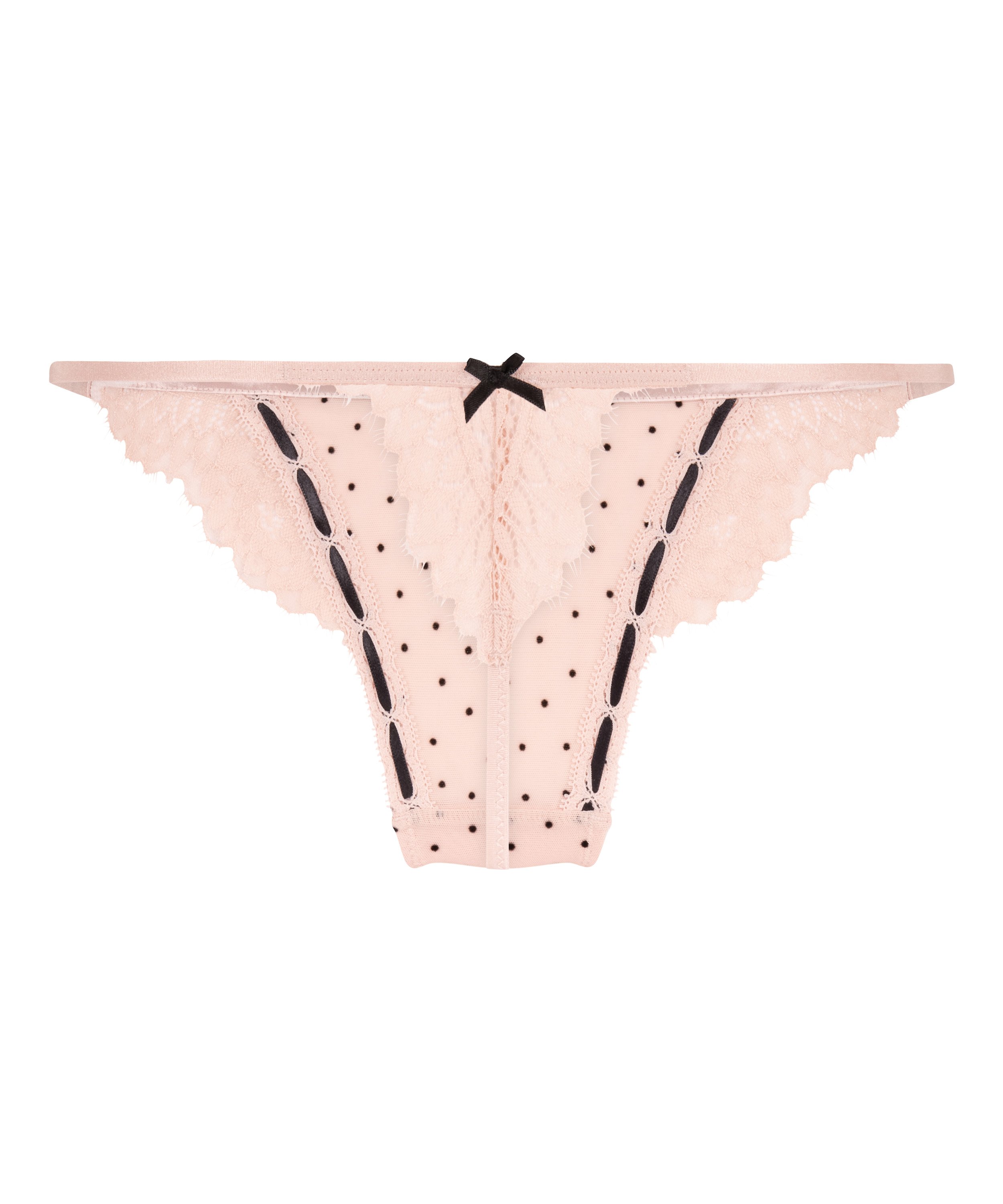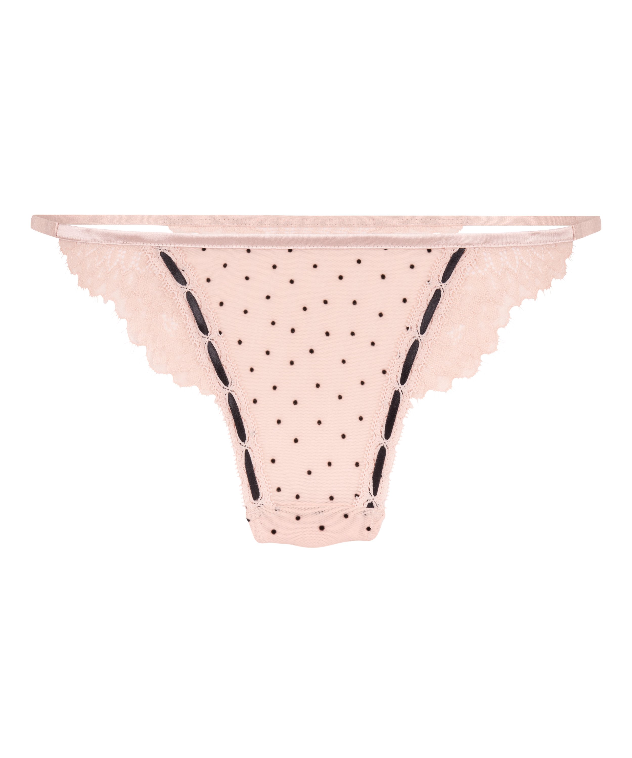 Light and feminine, our Dorothy thong is a perfect mix of pretty and practical. The front features dotted mesh, while the lace back adds a touch of elegance. Combine with a matching bra for a complete look.