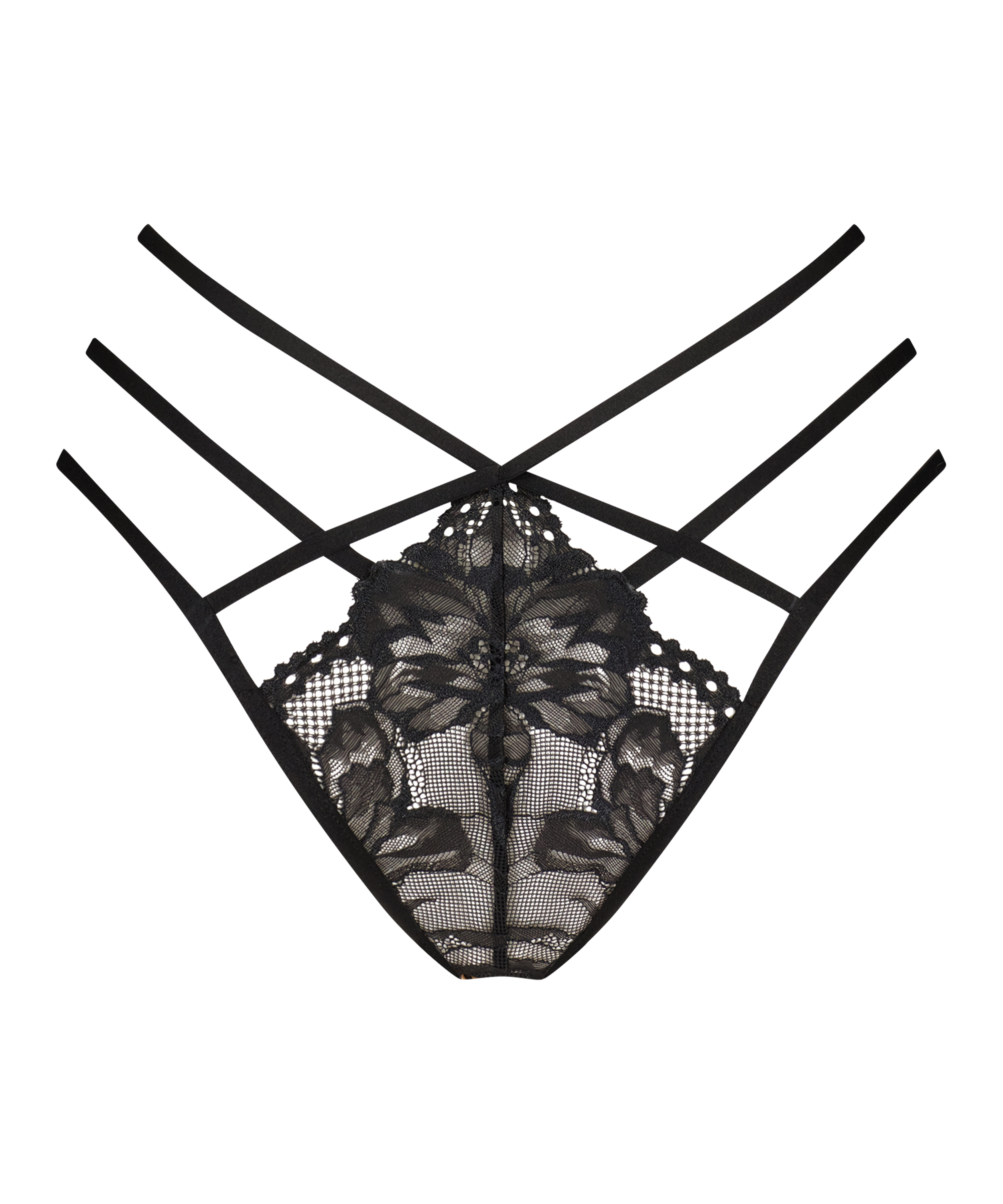 Spice things up with this unique open-crotch brazilian. With an overall lace look in the front and back, with lots of strappy details and cut-outs for the outmost sexiness. The open crotch adds an extra level of spicy. Complete the set with the matching bra!