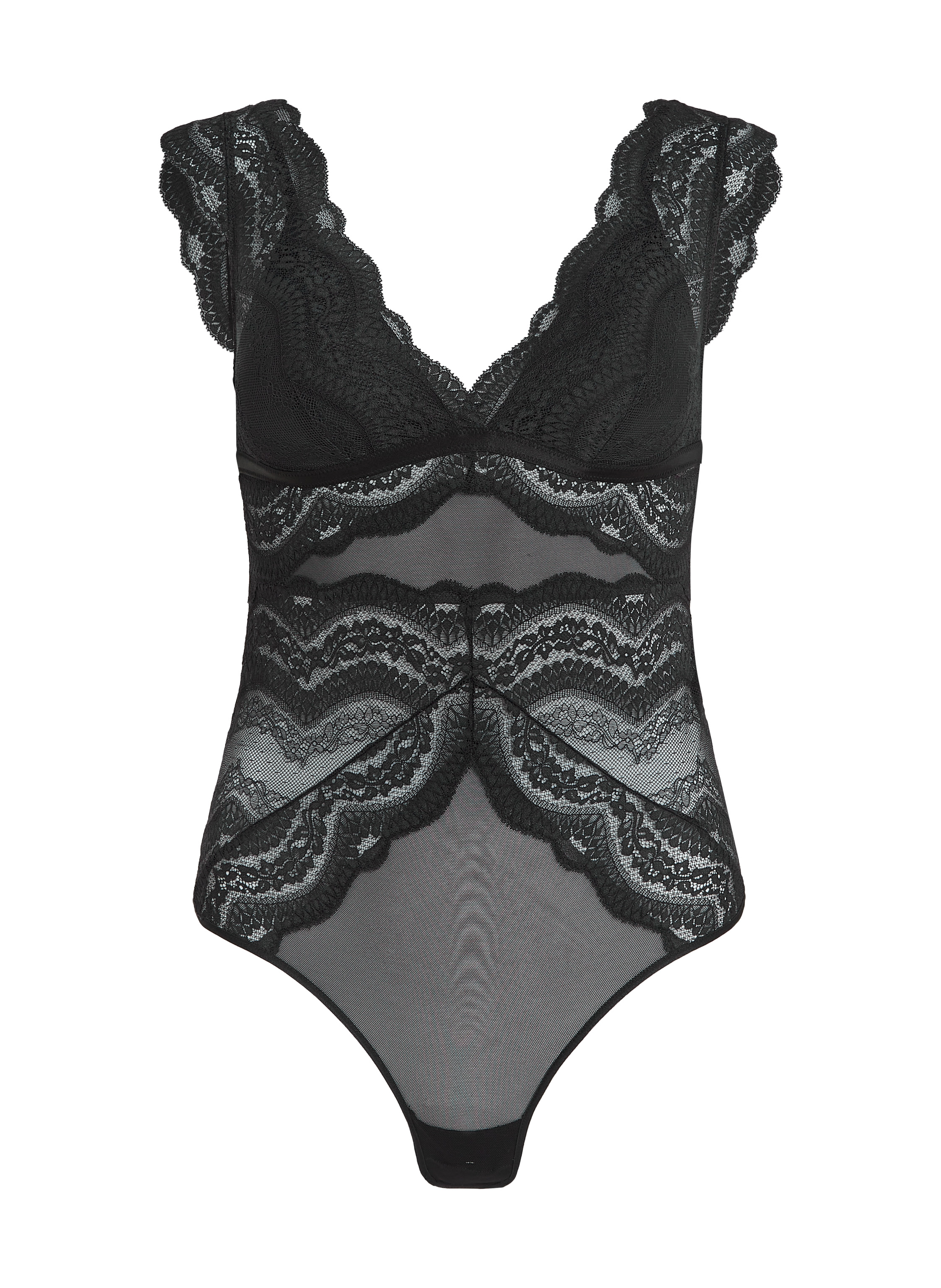 Turn heads with this beautiful body, a stunning piece that exudes elegance. The front has some lace details, while the mesh in the back offers a sleek and flattering fit. The cut-out detail in the back adds a daring touch making this body perfect.
