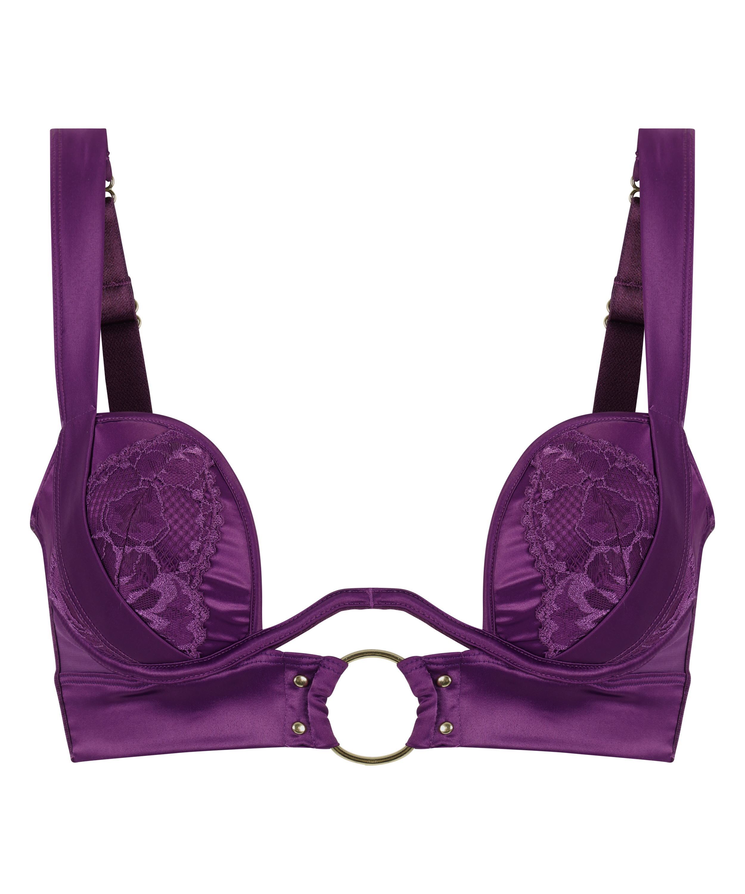 Go for a sexy look with this stunning bra! This bra has a gorgeous open front look that creates a sexy revealing neckline. Finish the look with the matching slips from our Private Collection.