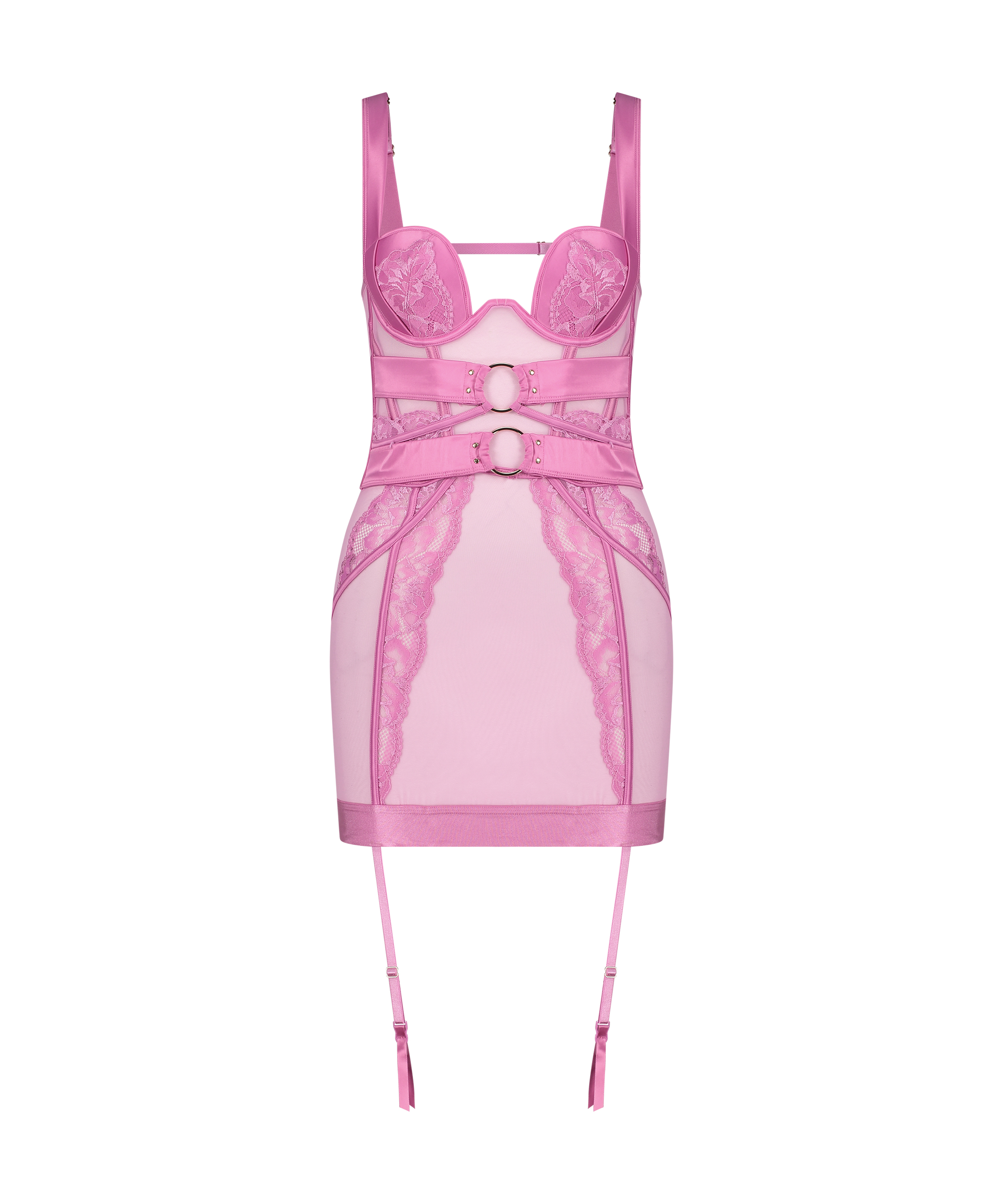 Playing the line between a dress and a bustier, the stunning slip dress is a decadent piece that’s guaranteed to elevate your seductive pursuits! This dress design features wiring that helps create a flattering silhouette, a sexy satin look and feel on the straps add a touch of femininity. With hosiery loops to style this dress as you please. Combine with the matching brief and a pair of stockings for a striking, complete look. Part of the Private collection.