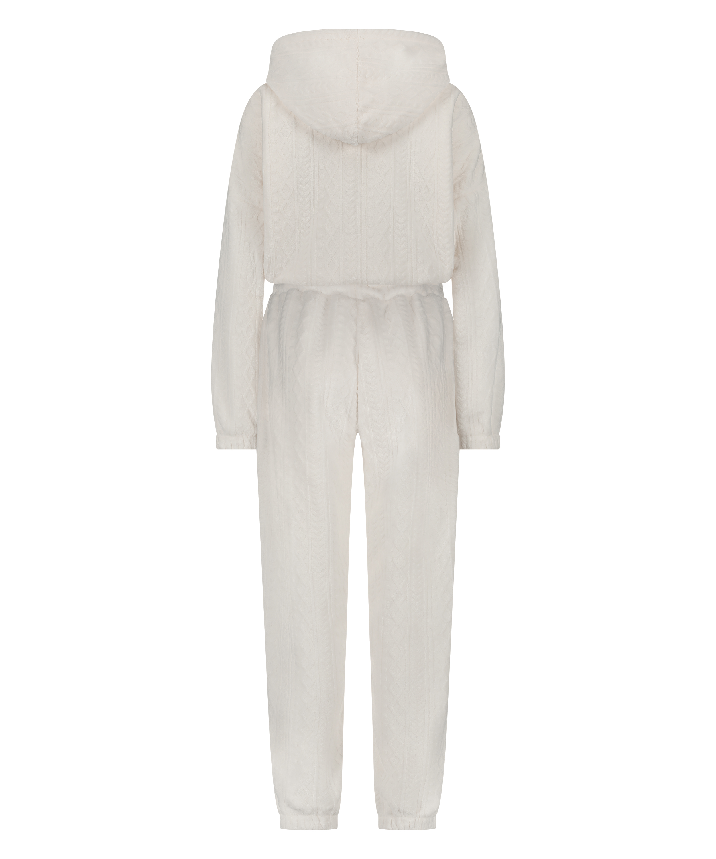 Chill mode on! Relax in this onesie finished with a subtle design and a hood.