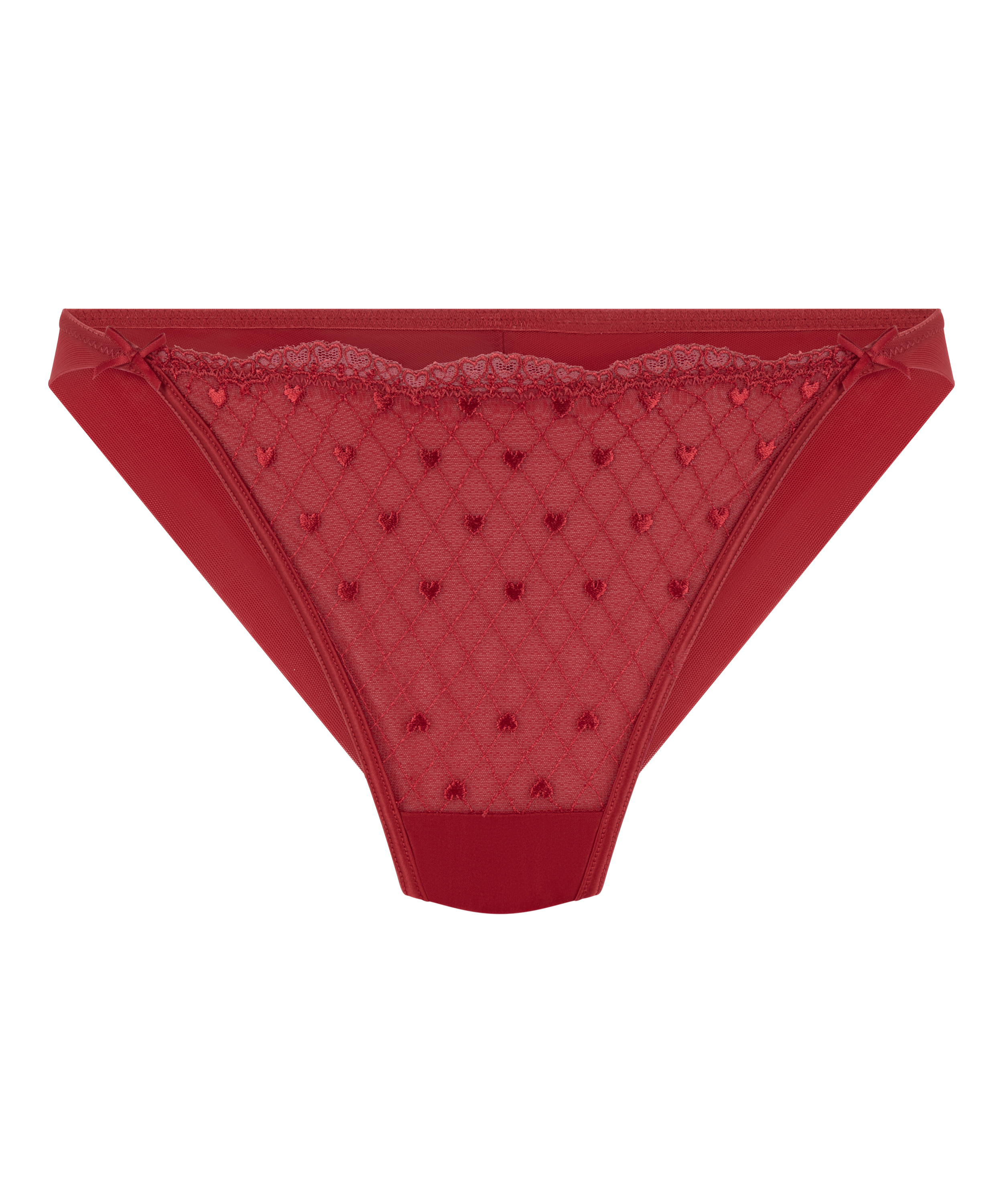 Fall in love with elegance! This stunning Brazilian brief features a romantic heart-embroidered lace front that exudes femininity and charm, while the mesh back adds a touch of sensuality while ensuring a lightweight, breathable fit. Perfect for those who adore delicate lingerie with a flirty twist, it combines comfort and style effortlessly. Elevate your lingerie drawer with this luxurious lace Brazilian brief and pair it with the matching bra!