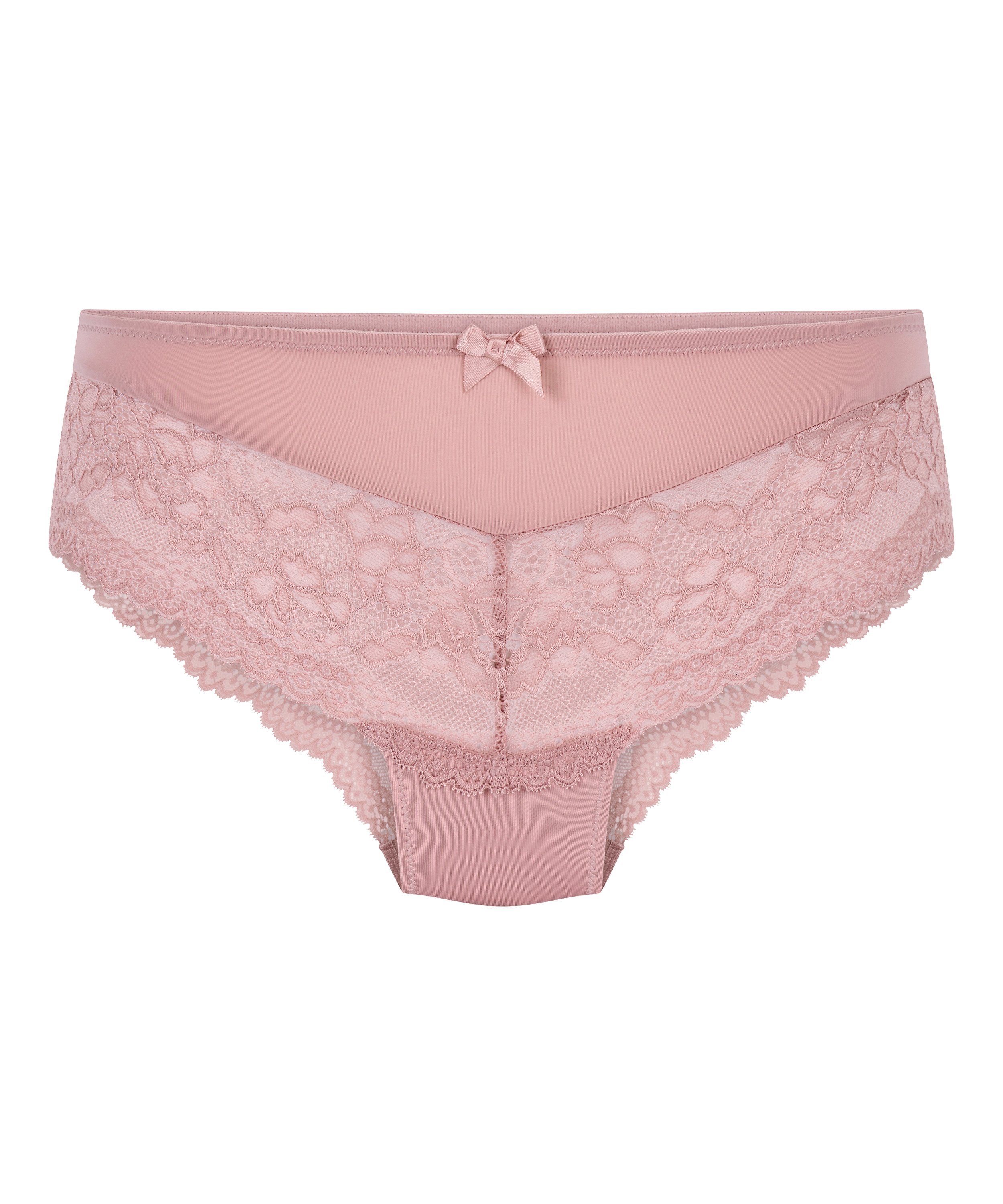 Opt for comfort with these beautiful Brazilian knickers. The Brazilian knickers are trimmed with lace and a small bow at the front. You can combine these knickers with many items, so they are a must-have in your collection! This super comfortable essential has a new and improved hand feel, very soft and stretchable. With a beautiful flower pattern lace which makes this style extra fashionable.
